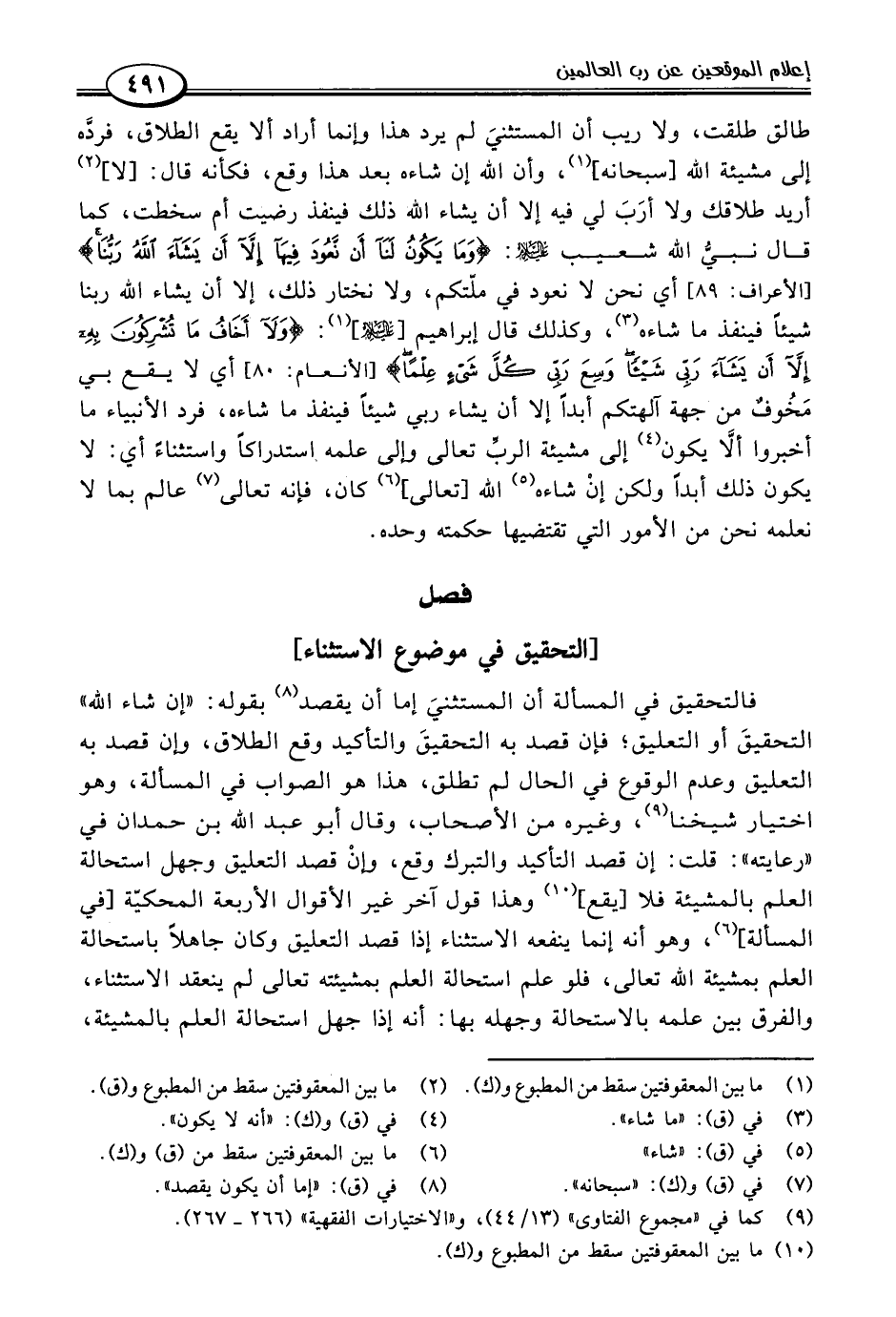 فصل [التحقيق في موضوع الاستثناء]