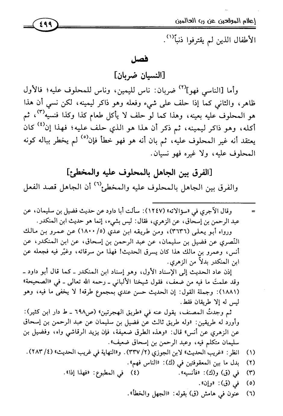 (٦) عنون في هامش (ق) بقوله: "الجهل والخطأ".
