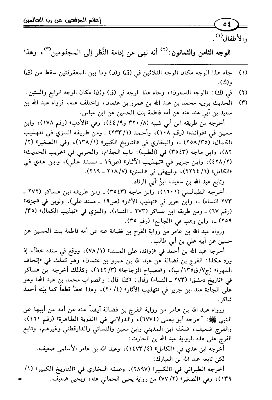 (٣) الحديث يرويه محمد بن عبد اللَّه بن عمرو بن عثمان، واختلف عنه، فرواه عبد اللَّه بن سعيد بن أبي هند عنه عن أمه فاطمة بنت الحسين عن ابن عباس.