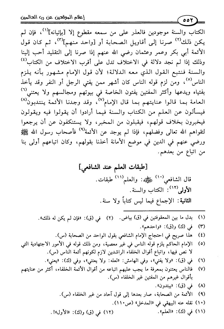 قال الشافعي (١٠) -رضي اللَّه عنه-: والعلم (١١) طبقات.