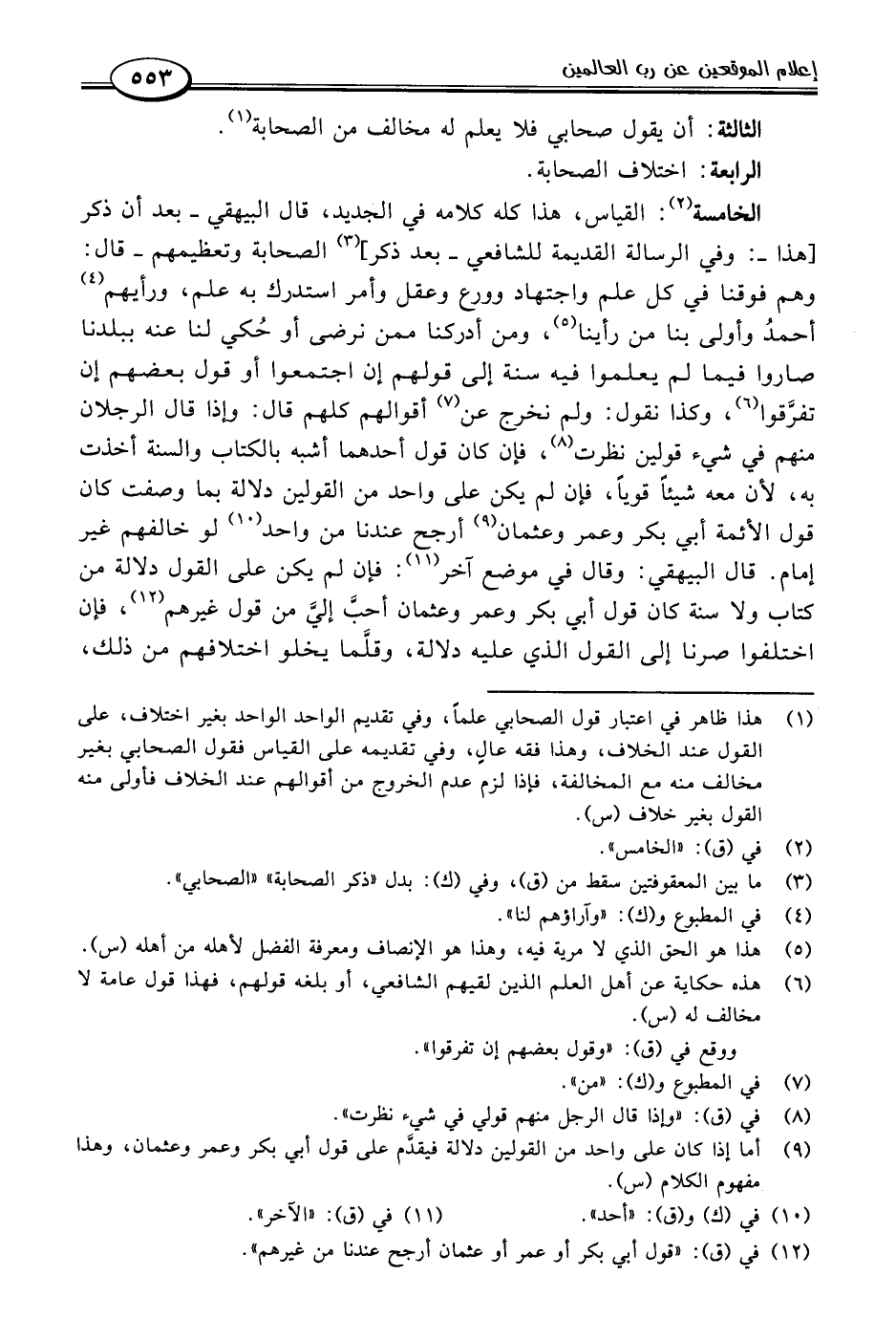 (٩) أما إذا كان على واحد من القولين دلالة فيقدَّم على قول أبي بكر وعمر وعثمان، وهذا مفهوم الكلام (س).