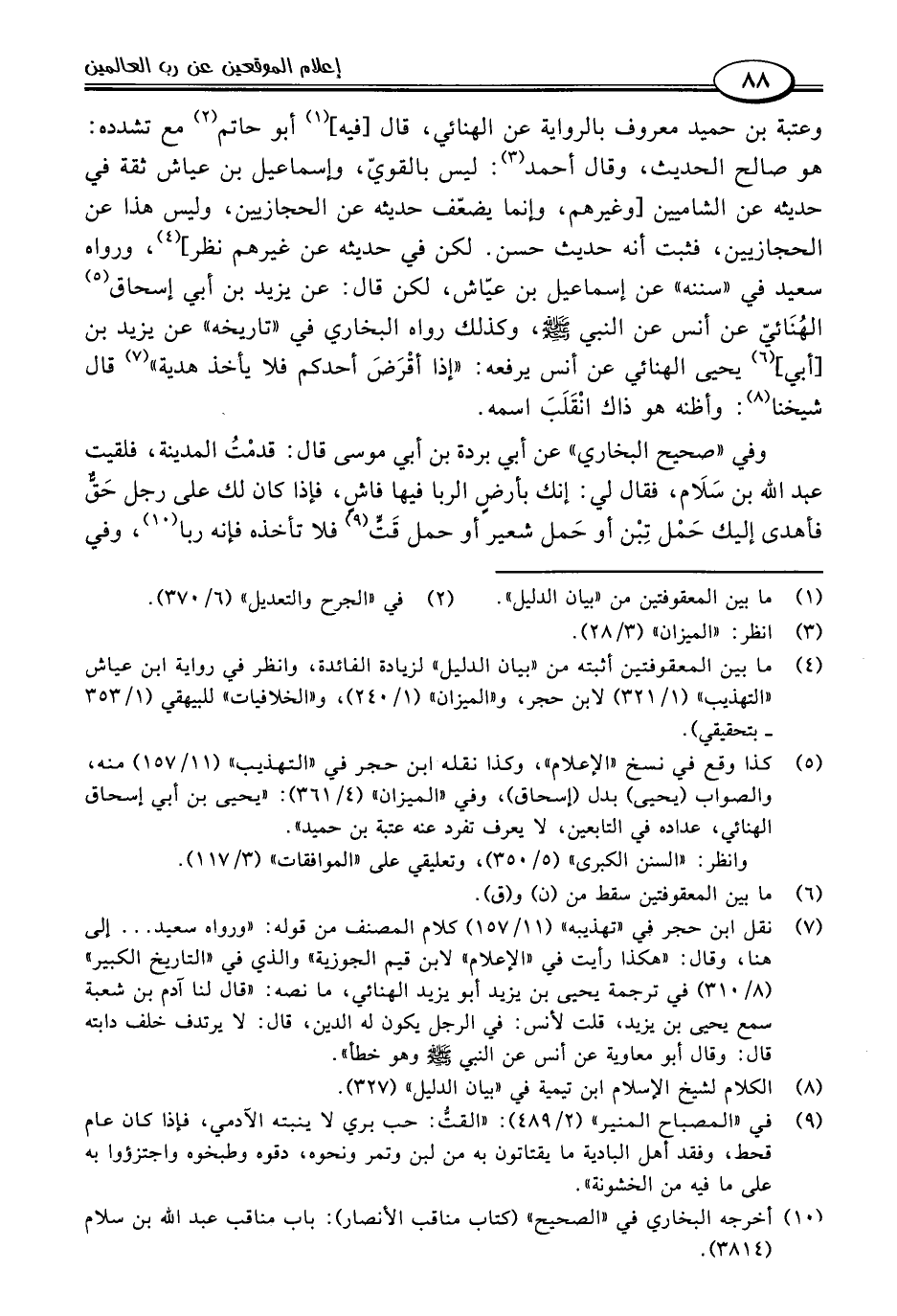 وعتبة بن حميد معروف بالرواية عن الهنائي، قال [فيه] (١) أبو حاتم (٢) مع تشدده: هو صالح الحديث، وقال أحمد (٣): ليس بالقويّ، وإسماعيل بن عياش ثقة في حديثه عن الشاميين [وغيرهم، وإنما يضعّف حديثه عن الحجازيين، وليس هذا عن الحجازيين، فثبت أنه حديث حسن. لكن في حديثه عن غيرهم نظر] (٤)، ورواه سعيد في "سننه" عن إسماعيل بن عيَّاش، لكن قال: عن يزيد بن أبي إسحاق (٥) الهُنَائيّ عن أنس عن النبي -صلى اللَّه عليه وسلم-، وكذلك رواه البخاري في "تاريخه" عن يزيد بن [أبي] (٦) يحيى الهنائي عن أنس يرفعه: "إذا أقْرَضَ أحدكم فلا يأخذ هدية" (٧) قال شيخنا (٨): وأظنه هو ذاك انْقَلَبَ اسمه.