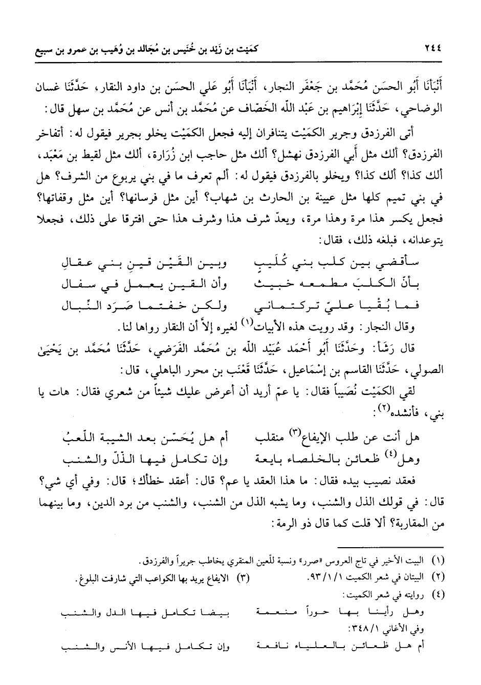 (4) روايته في شعر الكميت: وهل رأينا بها حورا منعمة * بيضا تكامل فيها الدل والشنب وفي الأغاني 1 / 348