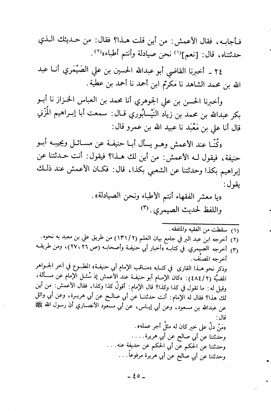 يَا مَعْشَرَ الْفُقَهَاءِ أَنْتُمُ الْأَطِبَّاءُ وَنَحْنُ الصَّيَادِلَةُ وَاللَّفْظُ لِحَدِيثِ الصَّيْمَرِيِّ