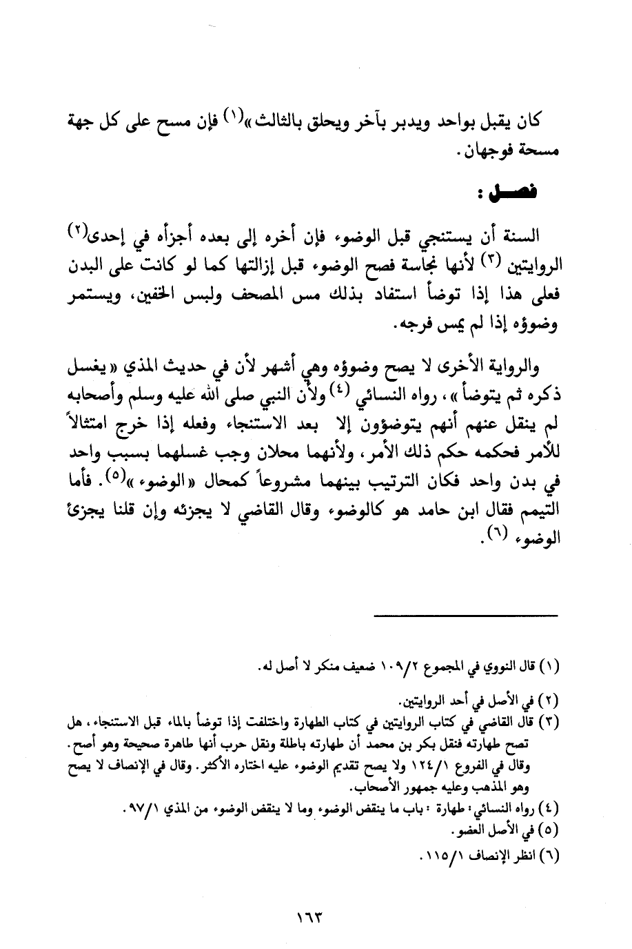 السُّنَّةُ أَنْ يَسْتَنْجِيَ قَبْلَ الْوُضُوءِ فَإِنْ أَخَّرَهُ إِلَى بَعْدِهِ أَجْزَأَهُ فِي إِحْدَى الرِّوَايَتَيْنِ؛ لِأَنَّهَا نَجَاسَةٌ فَصَحَّ الْوُضُوءُ قَبْلَ إِزَالَتِهَا كَمَا لَوْ كَانَتْ عَلَى الْبَدَنِ؛ فَعَلَى هَذَا إِذَا تَوَضَّأَ اسْتَفَادَ بِذَلِكَ مَسَّ الْمُصْحَفِ وَلُبْسَ الْخُفَّيْنِ، وَيَسْتَمِرُّ وُضُوؤُهُ إِذَا لَمْ يَمَسَّ فَرْجَهُ.