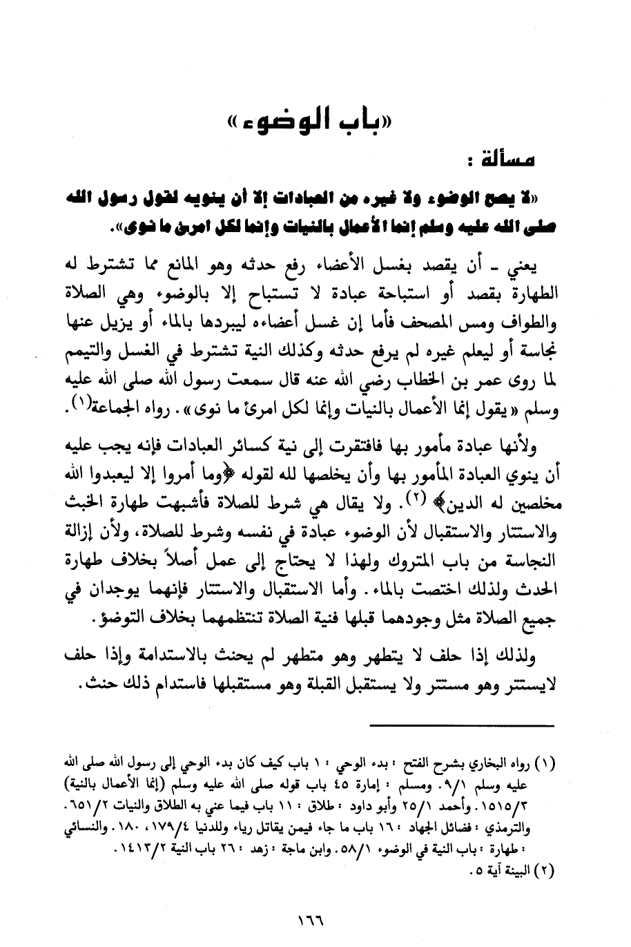 [بَابُ الْوُضُوءِ] [مَسْأَلَةٌ وجوب النية في العبادات]