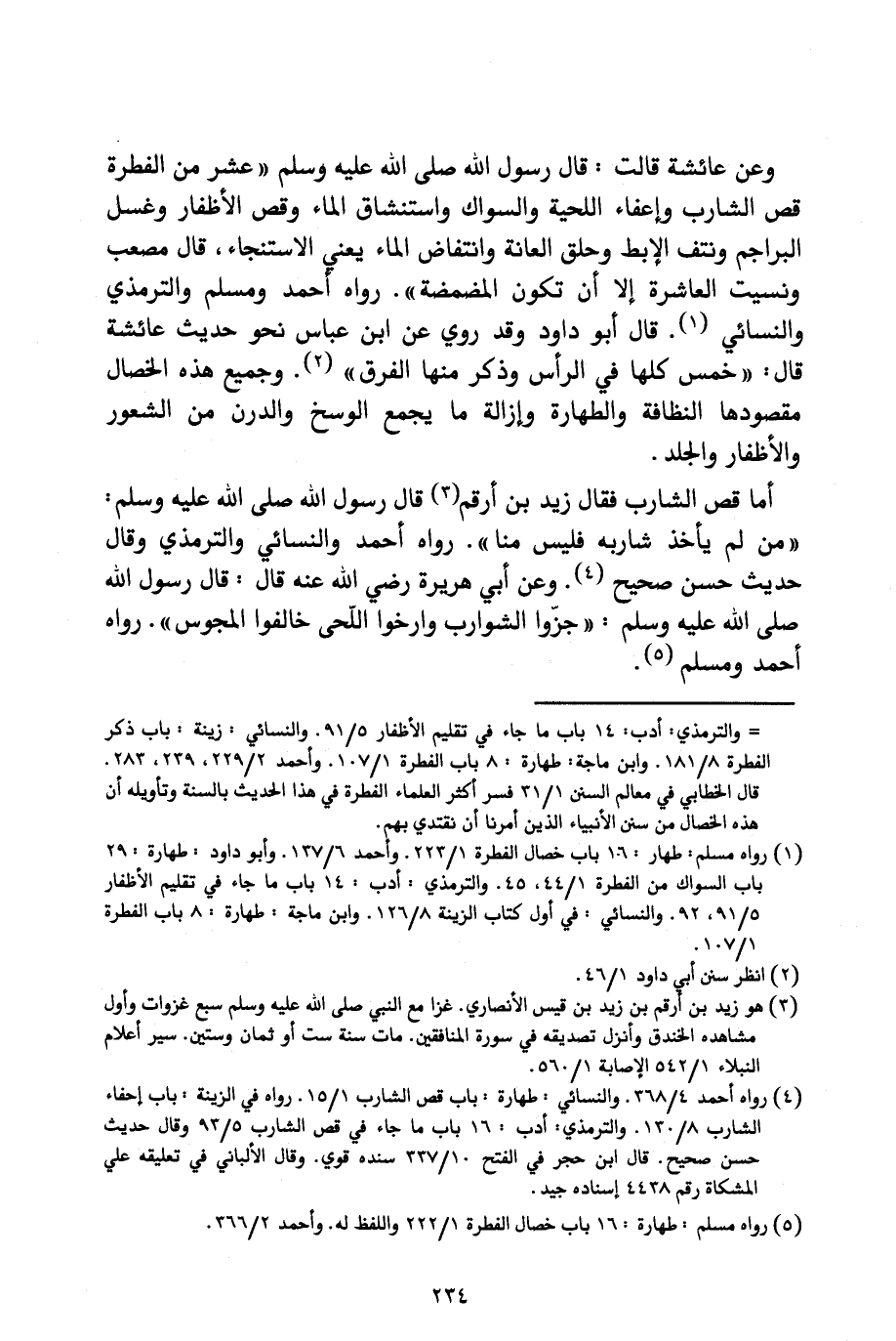 وَأَمَّا قَصُّ الشَّارِبِ، فَقَالَ زَيْدُ بْنُ أَرْقَمَ: قَالَ رَسُولُ اللَّهِ صَلَّى اللَّهُ عَلَيْهِ وَسَلَّمَ: («مَنْ لَمْ يَأْخُذْ شَارِبَهُ فَلَيْسَ مِنَّا») رَوَاهُ أَحْمَدُ وَالنَّسَائِيُّ وَالتِّرْمِذِيُّ وَقَالَ: حَدِيثٌ حَسَنٌ صَحِيحٌ.