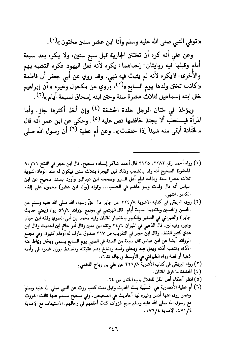 " تُوُفِّيَ النَّبِيُّ صَلَّى اللَّهُ عَلَيْهِ وَسَلَّمَ وَأَنَا ابْنُ عَشْرِ سِنِينَ مَخْتُونٌ ".