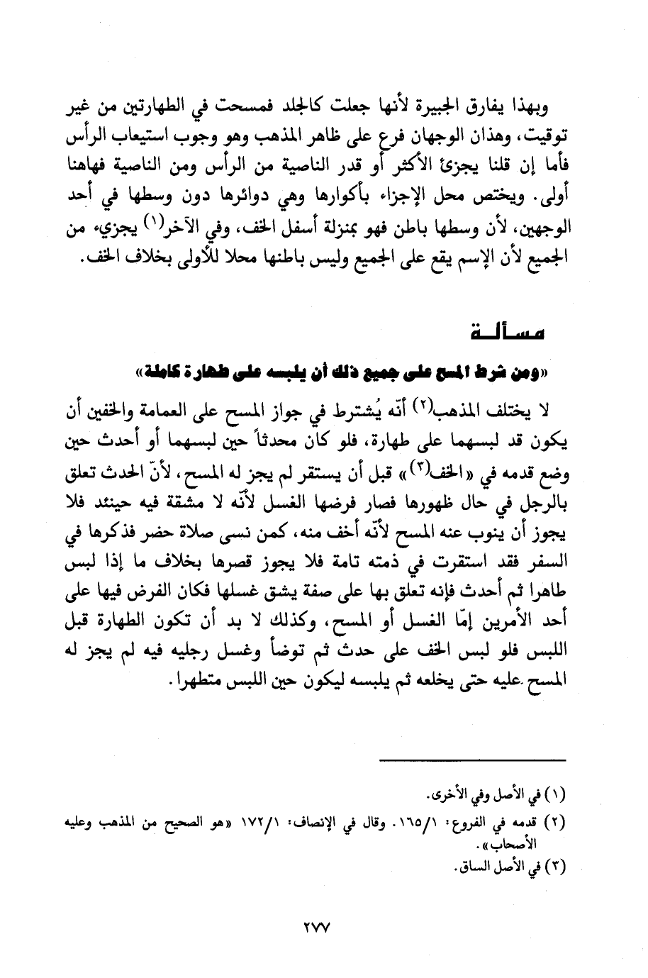 [مَسْأَلَةٌ شَرْطِ الْمَسْحِ على العمامة والخف]