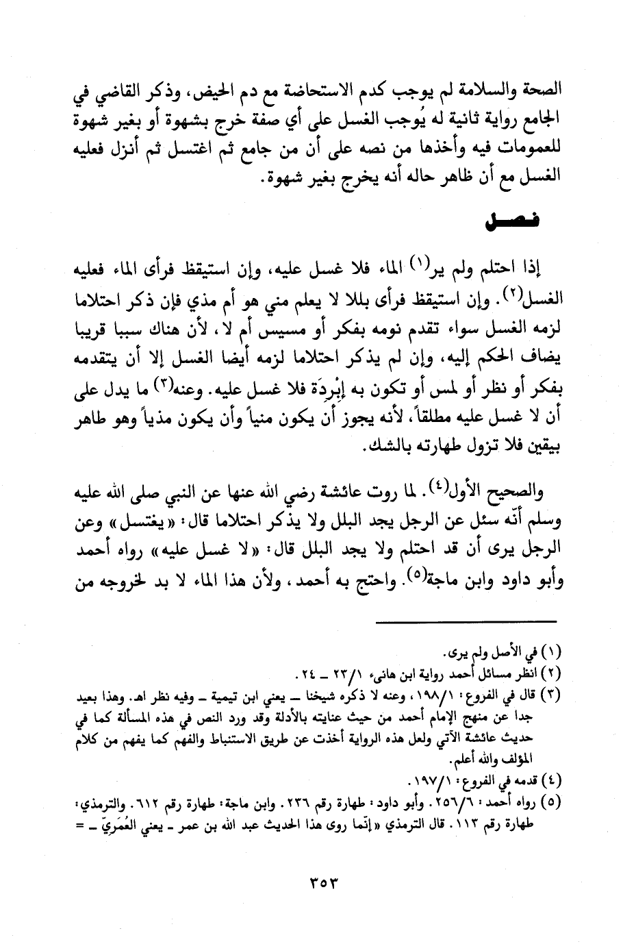 وَالصَّحِيحُ الْأَوَّلُ؛ لِمَا رَوَتْ عَائِشَةُ - رَضِيَ اللَّهُ عَنْهَا - عَنِ النَّبِيِّ - صَلَّى اللَّهُ عَلَيْهِ وَسَلَّمَ - «أَنَّهُ سُئِلَ عَنِ الرَّجُلِ يَجِدُ الْبَلَلَ وَلَا يَذْكُرُ احْتِلَامًا قَالَ: " يَغْتَسِلُ " وَعَنِ الرَّجُلِ يَرَى أَنْ قَدِ احْتَلَمَ وَلَا يَجِدُ الْبَلَلَ قَالَ: " لَا غُسْلَ عَلَيْهِ» " رَوَاهُ أَحْمَدُ وَأَبُو دَاوُدَ وَابْنُ مَاجَهْ، وَاحْتَجَّ بِهِ أَحْمَدُ؛ وَلِأَنَّ هَذَا الْمَاءَ لَا بُدَّ لِخُرُوجِهِ مِنْ