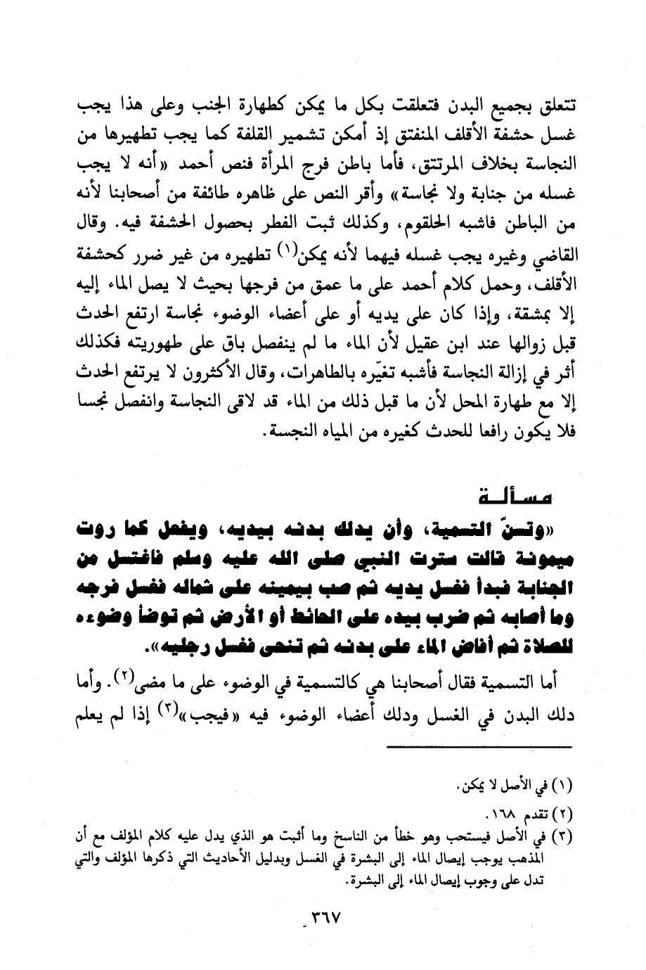 [مَسْأَلَةٌ يسَنُّ في الغسل التَّسْمِيَةُ وتُدَليِّكَ البَدَن]