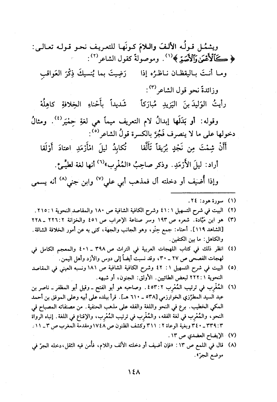 ويشمل قوله الألف واللام كونها للتعريف نحو قوله تعالى: {كَالأَعْمَى وَالأَصَمِّ} موصول كقول الشاعر: