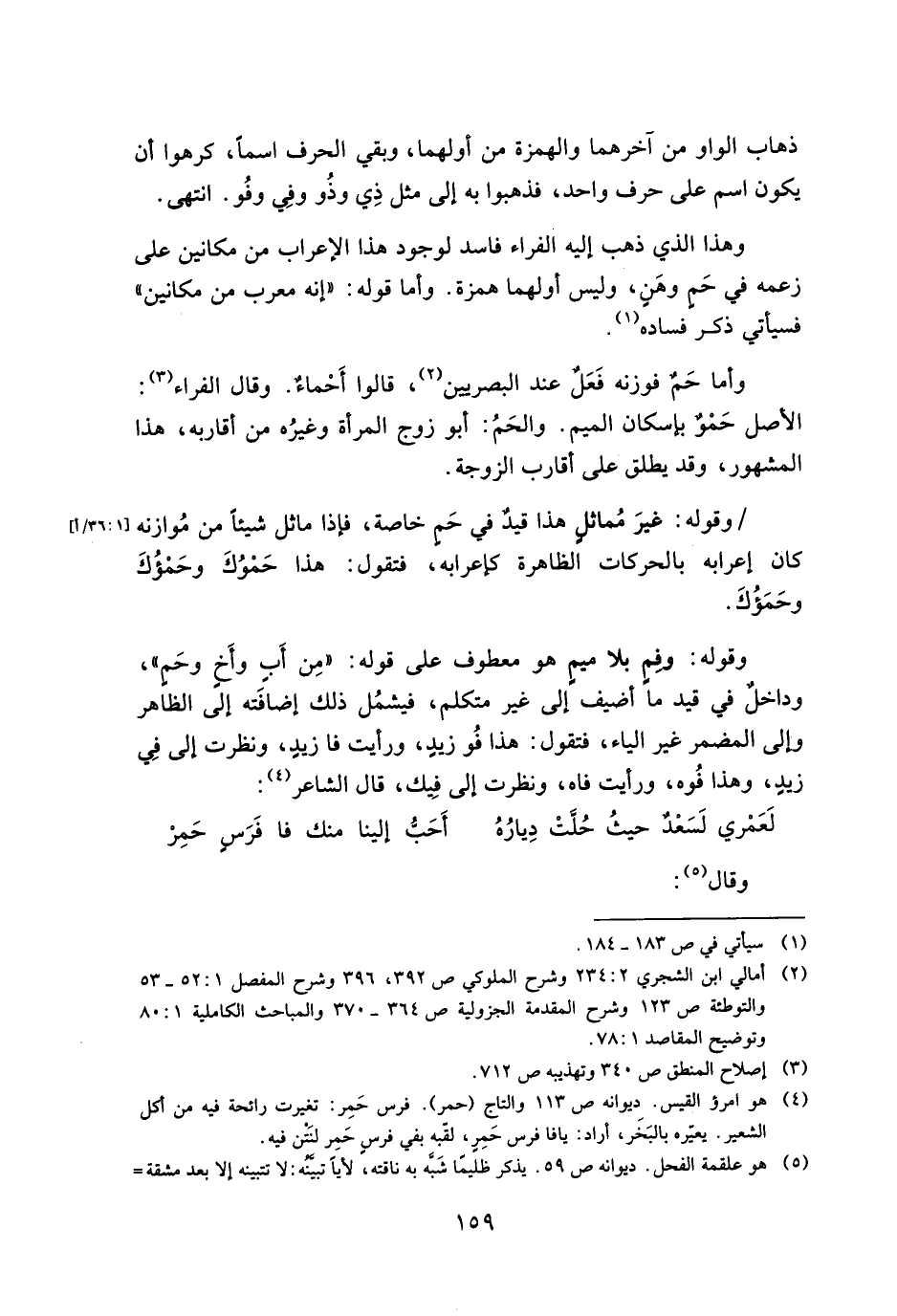 وهذا الذي ذهب إليه الفراء فاسد لوجود هذا الإعراب من مكانين على زعمه في حم وهن وليس أولهما همزة. وأما قوله: " إنه معرب من مكانين" فسيأتي ذكر فساده.