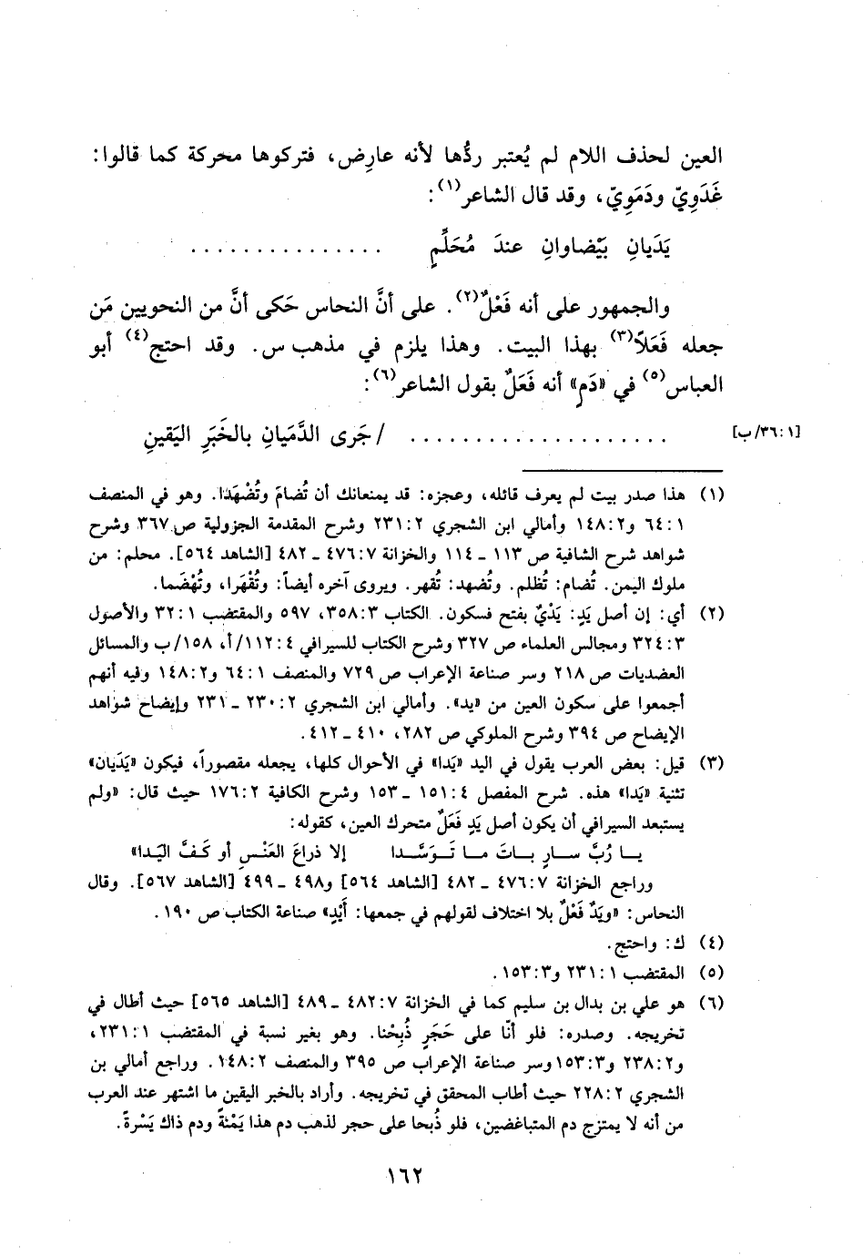 العين لحذف اللام لم يعتبر ردها لأنه عارض، فتركوها محركة كما قالوا: غدوي ودموي وقد قال الشاعر: