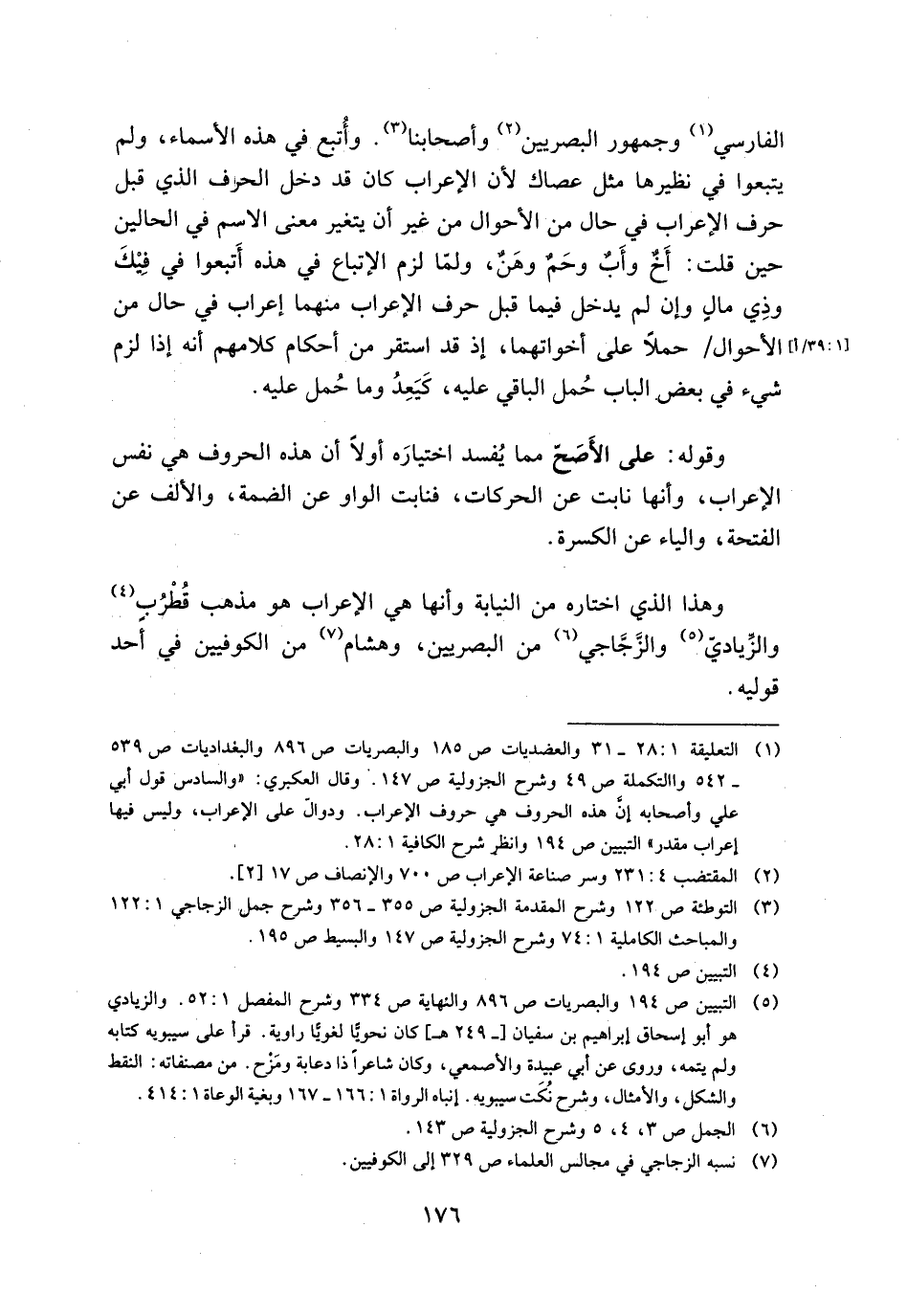 وهذا الذي اختاره من النيابة وأنها هي الإعراب هو مذهب قطرب والزيادي والزجاجي من البصريين وهشام من الكوفيين في أحد قوليه.