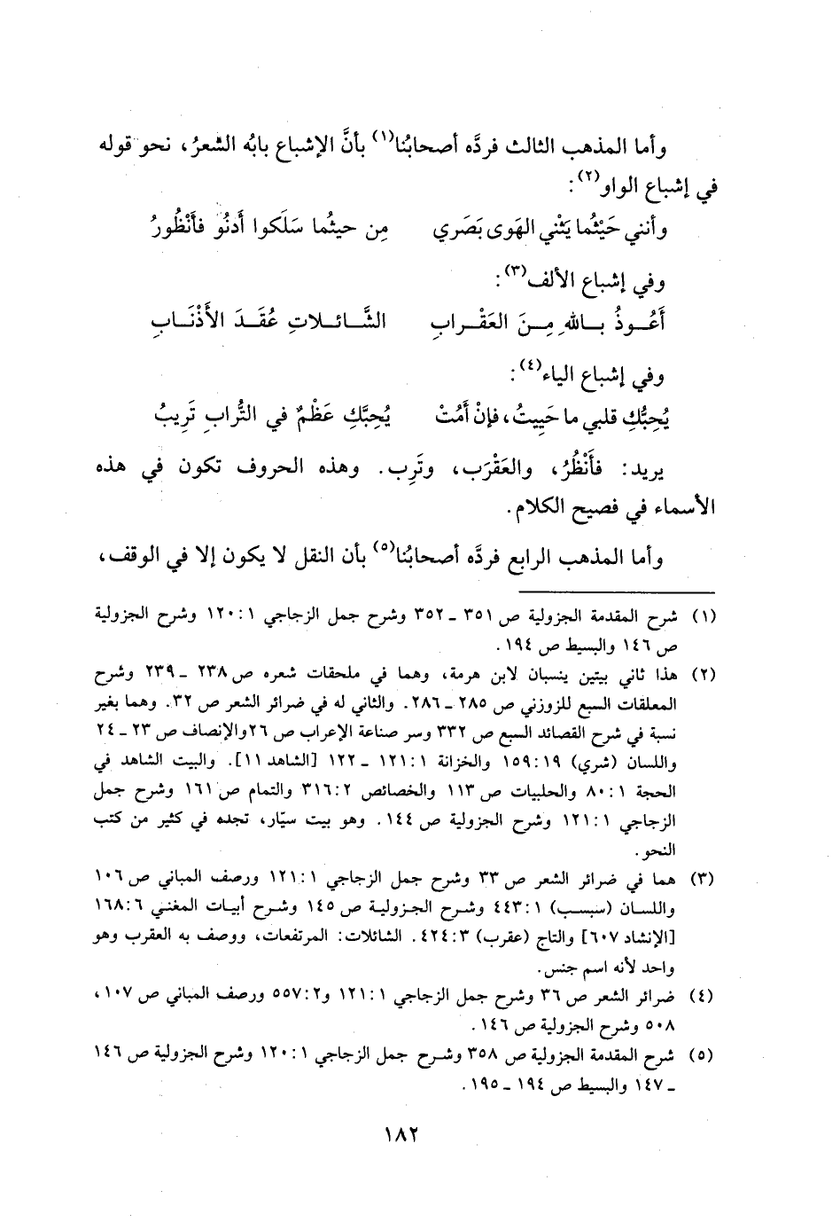 وأما المذهب الثالث فرده أصحابنا بان الإشباع بابه الشعر، نحو قوله في إشباع الواو: