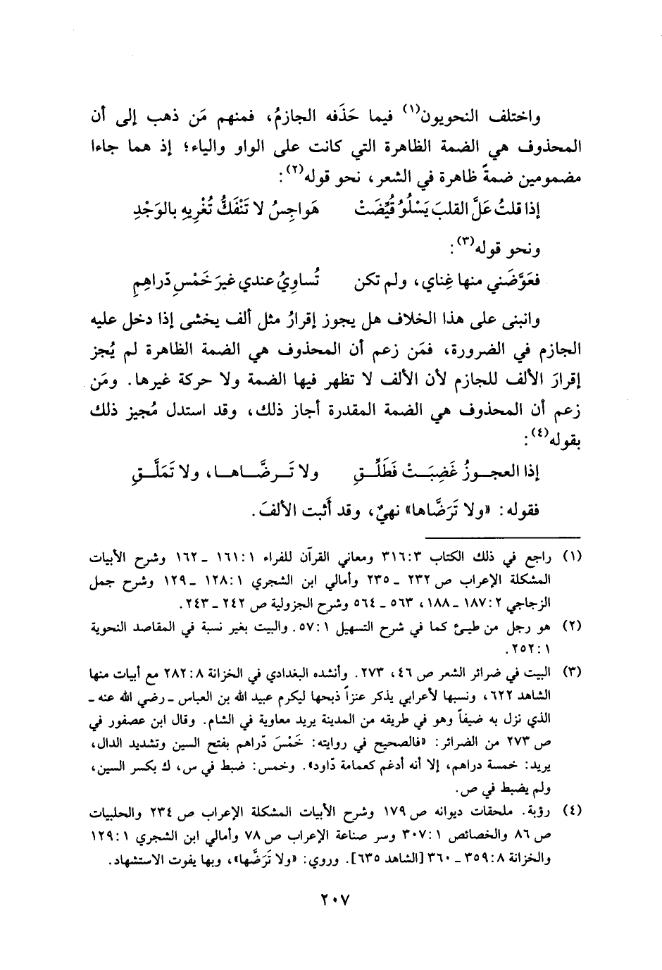 واختلف النحويون فيما حذفه الجازم، فمنهم من ذهب إلى أن المحذوف هي الضمةً الظاهرةً التي كانت على الواو والياء؛ إذ هما جاءا مضمومين ضمةً ظاهرةً في الشعر، نحو قوله: