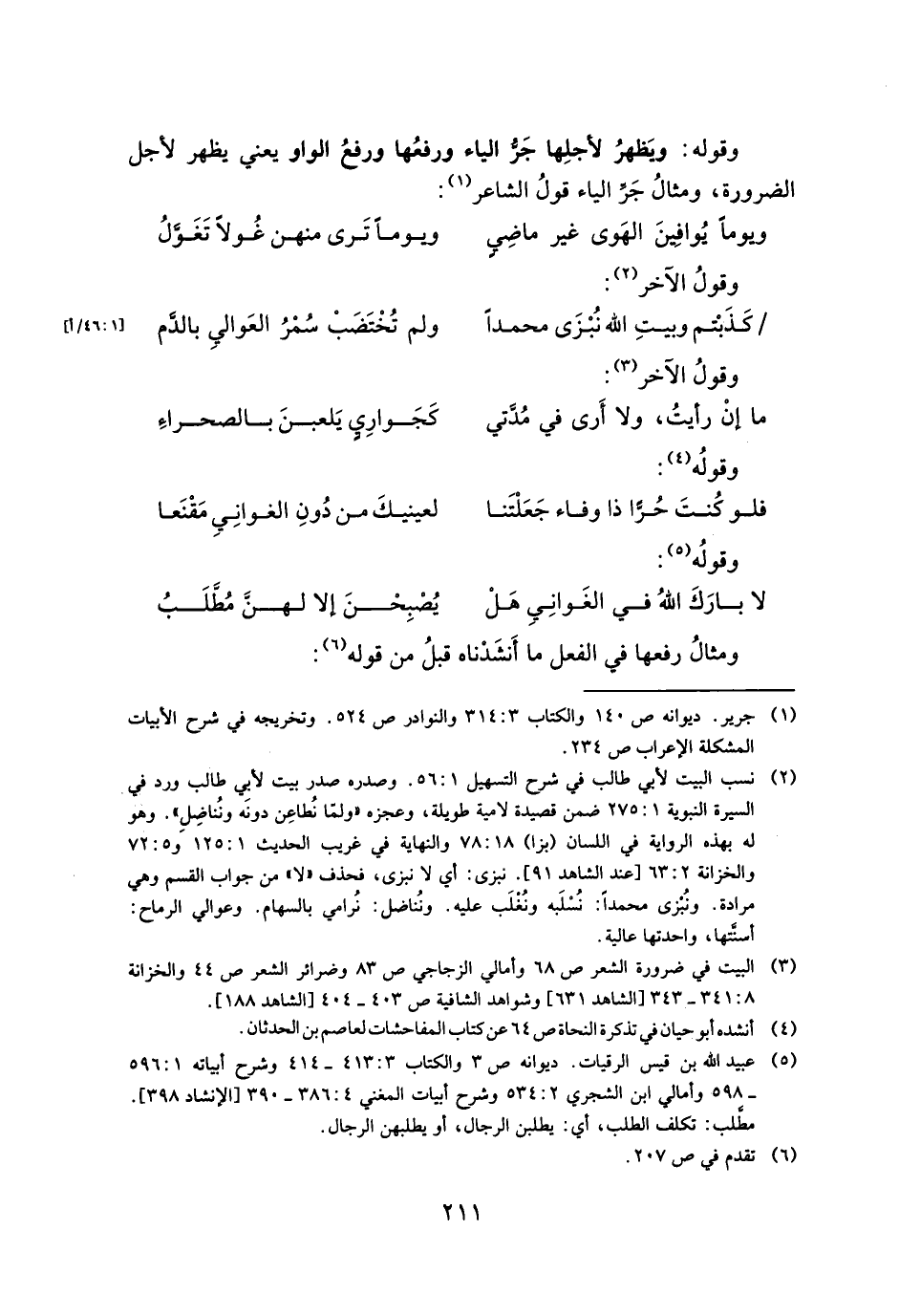 ومثال رفعها في الفعل ما أنشدناه قبل من قوله: