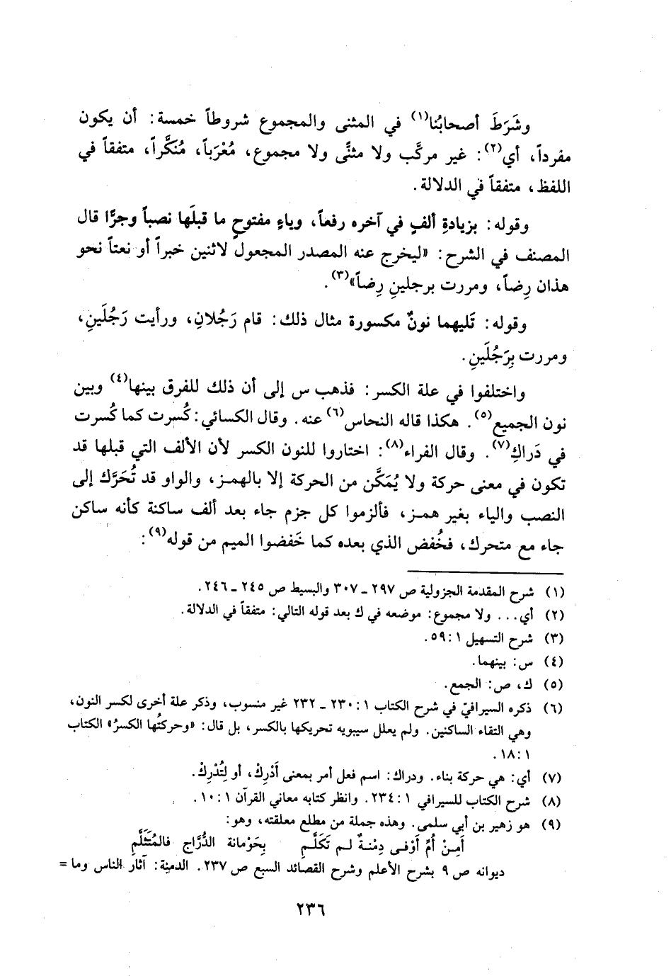 وشرط أصحابنا في المثني والمجموع شروطا خمسة: أن يكون مفردا، أي: غير مركب ولا مثني ولا مجموع، معربا، منكرا، متفقا في اللفظ، متفقا في الدلالة.
