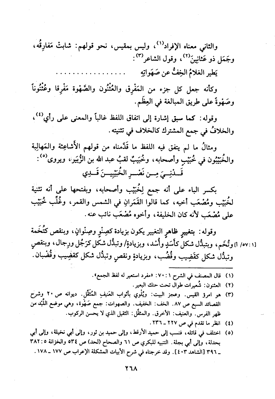 وقوله: كما سبق إشارة إلى اتفاق اللفظ غالباً والمعنى على رأي والخلاف في جمع المشترك كالخلاف في تثنيته. ومثال ما لم يتفق فيه اللفظ ما قدمناه من قولهم الأشاعثة والمهالبة والخبيبون في خبيب وأصحابه، وخبيب لقب عبد الله بن الزبير، ويروى: