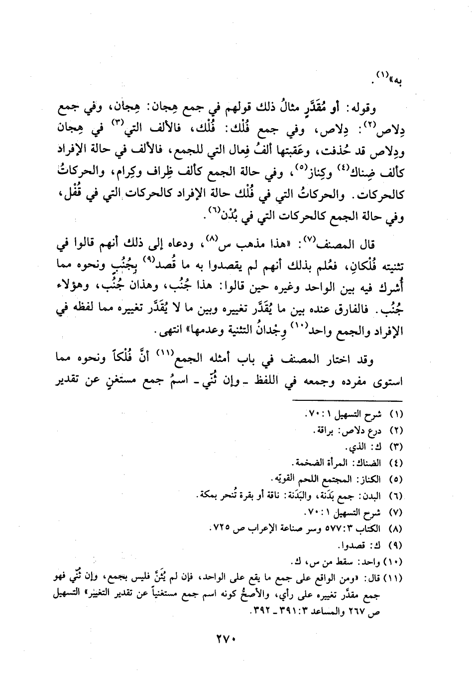 قال المصنف: " هذا مذهب س، ودعاه إلى ذلك أنهم قالوا في تثنيته فلكان، فعلم بذلك أنهم لم يقصدوا به كما قصد بجنب ونحوه مما أشرك فيه بين الواحد وغيره حين قالوا: هذا جنب، وهذان جنب، وهؤلاء جنب، فالفارق عنده بين ما يقدر تغييره وبين مالا يقدر تغييره مما لفظه في الإفراد والجمع واحد، وجدان التثنية وعدمها" انتهى.