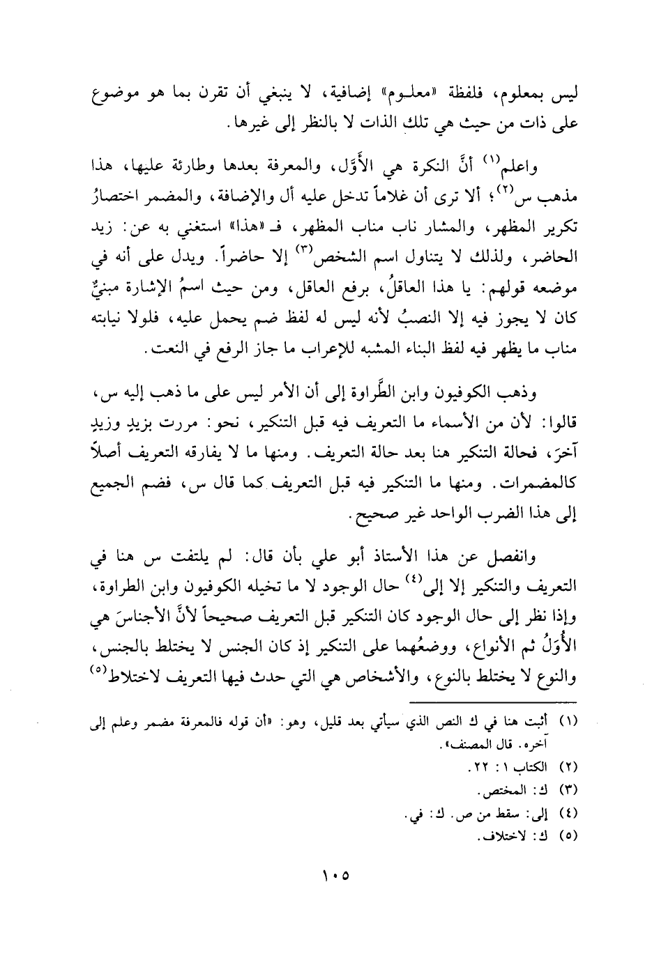 وذهب الكوفيون وابن الطراوة إلى أن الأمر ليس علي ما ذهب إليه س، قالوا: لأن من الأسماء ما التعريف فيه قبل التنكير، نحو: مررت بزيد وزيدٍ آخر، فحالة التنكير هنا بعد حالة التعريف. ومنها ما لا يفارقه التعريف أصلًا كالمضمرات. ومنها ما التنكير فيه قبل التعريف كما قال س، فضم الجميع إلى هذا الضرب الواحد غير صحيح.