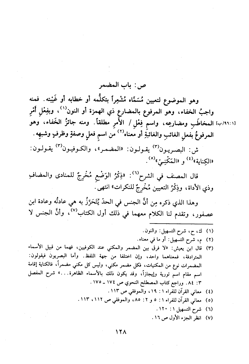 ش: البصريون يقولون: "المضمر"، والكوفيون يقولون: "الكناية" و"المكني".