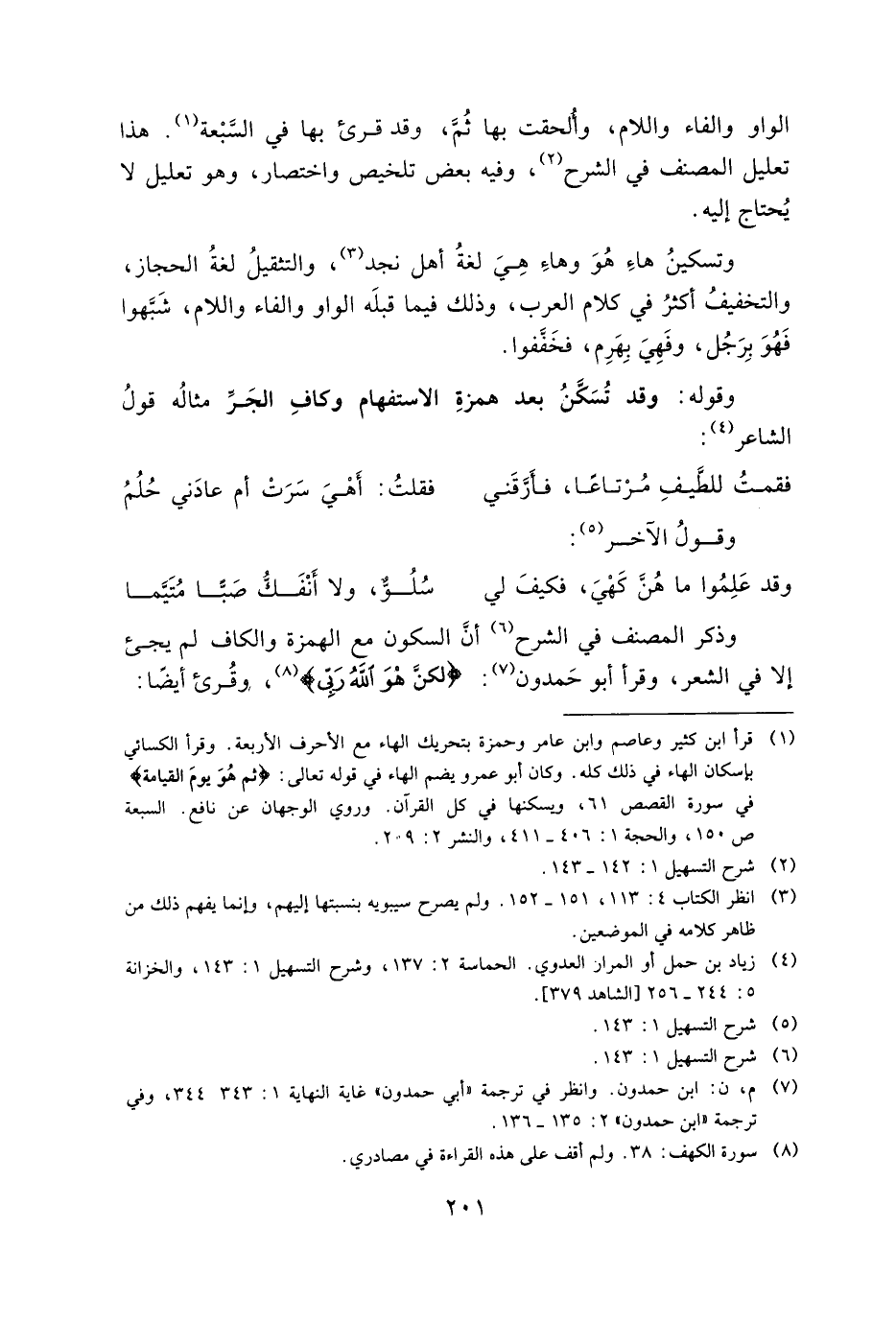 وتسكين هاء هو وهاء هى لغة أهل نجد، والتثقيل لغة الحجاز، والتخفيف أكثر في كلام العرب، وذلك فيما قبلة الواو والفاء واللام، شبهوا فهو يرحل، وفهي بهرم، فخففوا.