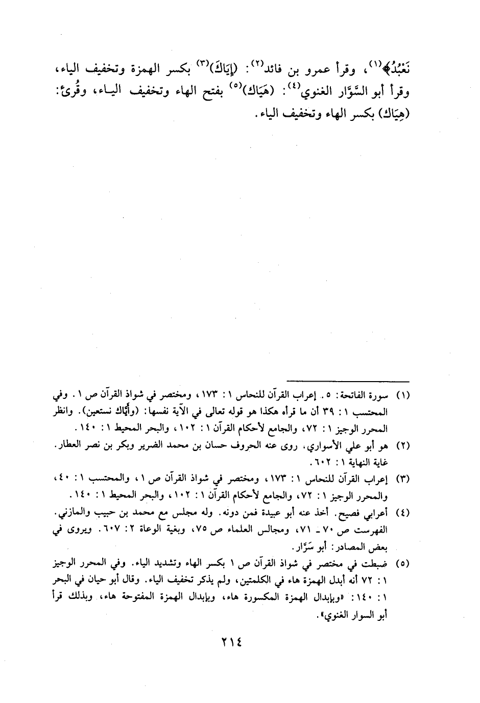 نَعْبُدُ}، وقرأ عمرو بن فائد: (إياك) بكسر الهمزة وتخفيف الياء، وقرأ أبو السوار الغنوي: (هياك) بفتح الهاء وتخفيف الياء، وقرئ: (هياك) بكسر الهاء وتخفيف الياء.
