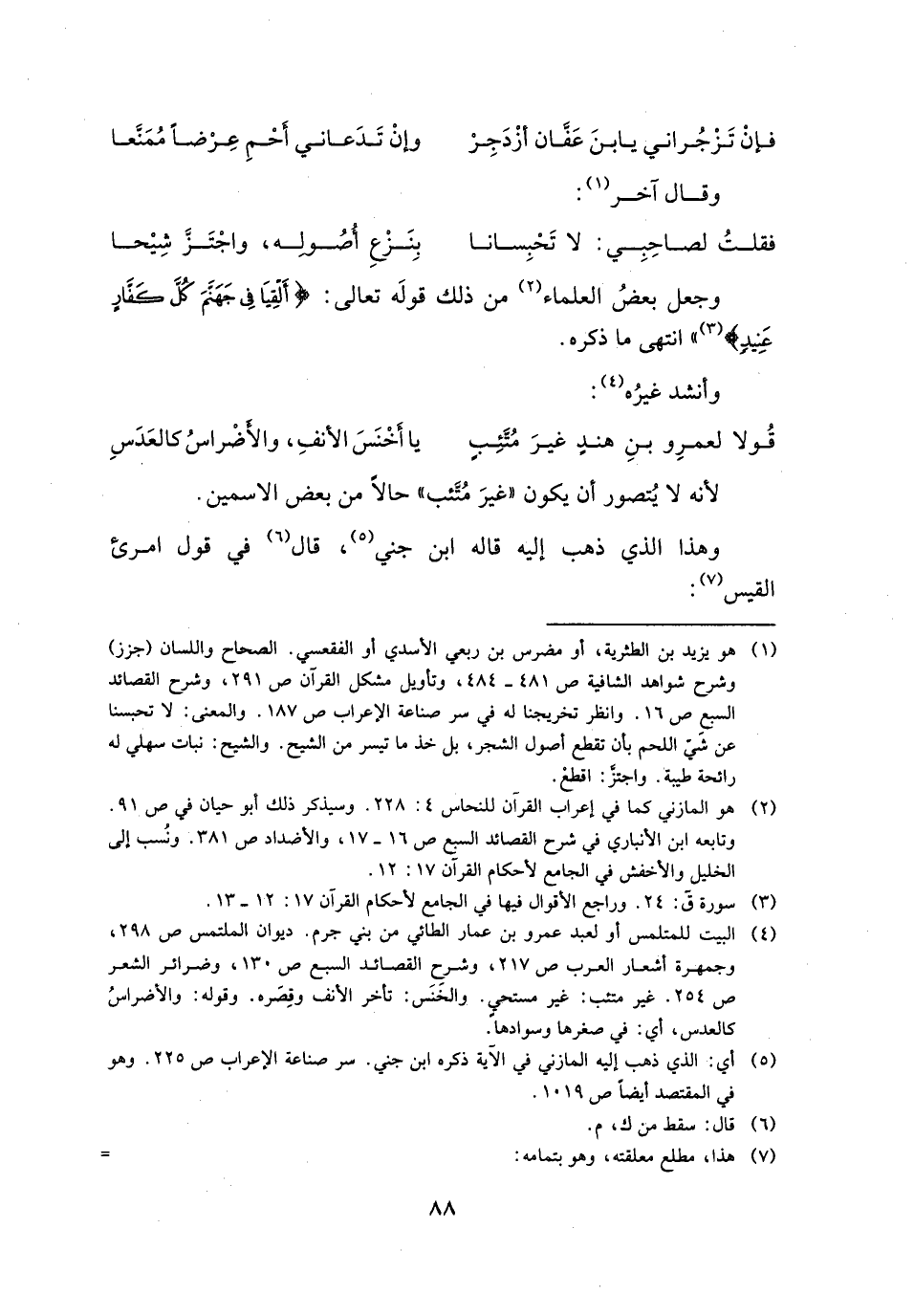 فإن تزجراني يابن عفان أزدجر ... وإن تدعاني أحم عرضاً ممنعا