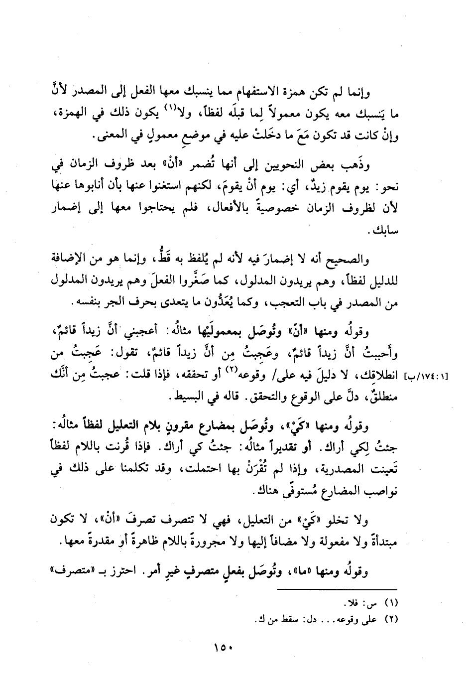 وإنما لم تكن همزة الاستفهام مما ينسبك معها الفعل إلى المصدر لأن ما ينسبك معه يكون معمولًا لما قبله لفظًا، ولا يكون ذلك في الهمزة وإن كانت قد تكون مع ما دخلت عليه في موضوع معمولٍ في المعنى.