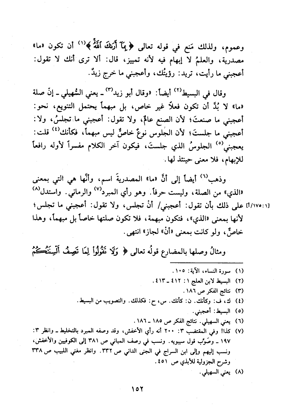 وعموم، ولذلك منع في قوله تعالى {بما أرك الله} أن تكون "ما" مصدرية، والعلم لا إبهام فيه لأنه تمييز، قال: ألا ترى أنك لا تقول: أعجبني ما رأيت، تريد: رؤيتك، وأعجبني ما خرج زيدٌ.