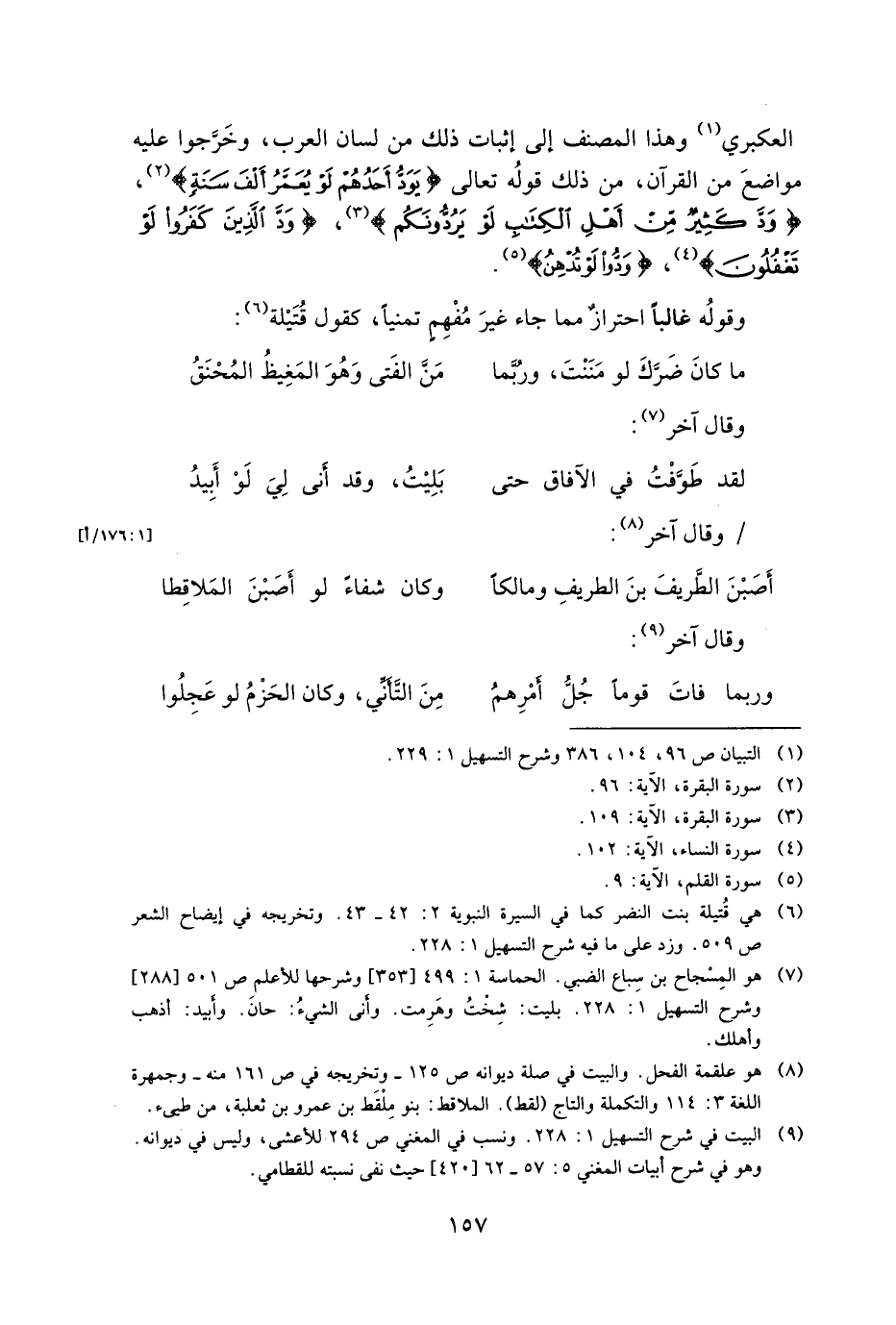 العكبري وهذا المصنف إلى إثبات ذلك من لسان العرب، وخرجوا عليه مواضع من القرآن، من ذلك قوله تعالى {يَوَدُّ أَحَدُهُمْ لَوْ يُعَمَّرُ أَلْفَ سَنَةٍ}، {وَدَّ كَثِيرٌ مِّنْ أَهْلِ الْكِتَابِ لَوْ يَرُدُّونَكُم}، {وَدَّ كَثِيرٌ مِّنْ أَهْلِ الْكِتَابِ لَوْ يَرُدُّونَكُم}، {وَدُّوا لَوْ تُدْهِنُ}.