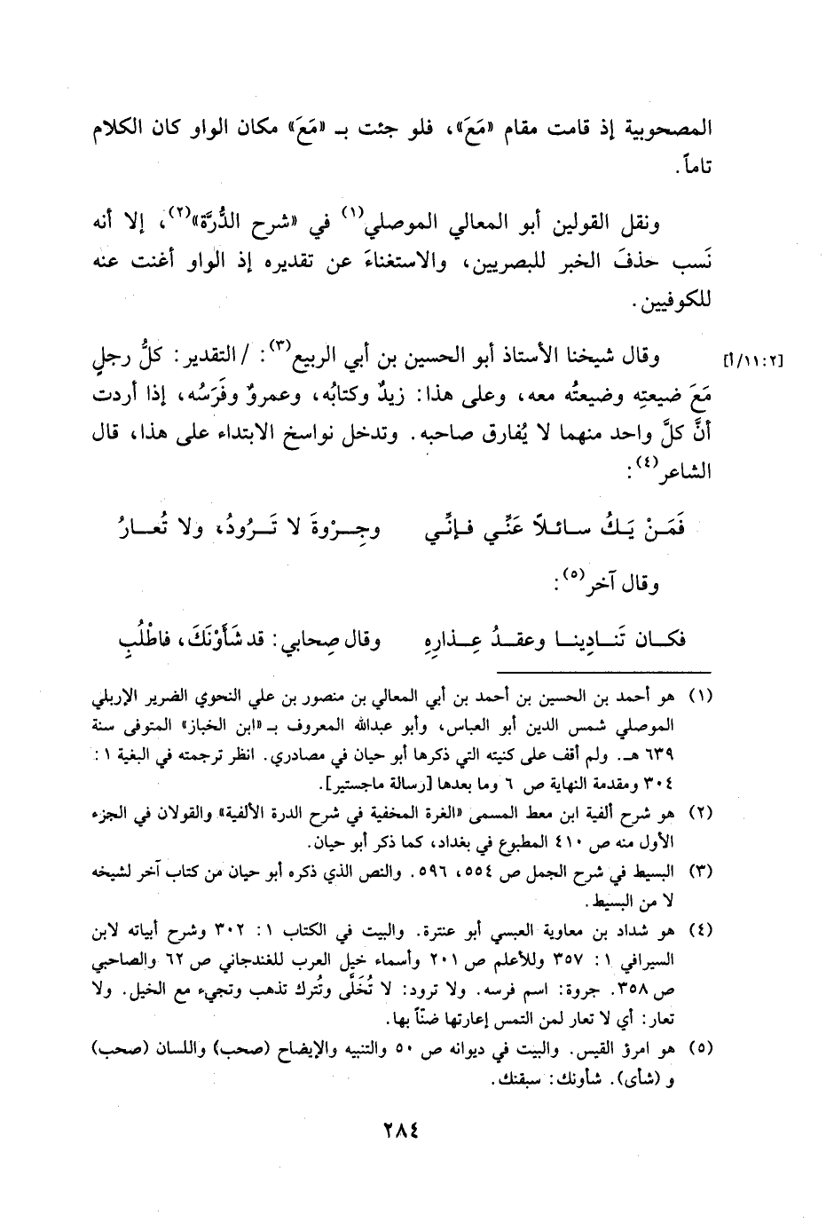 ونقل القولين أبو المعالي الموصلي في "شرح الدرة"، إلا أنه نسب حذف الخبر للبصريين، والاستغناء عن تقديره إذ الواو أغنت عنه للكوفيين.