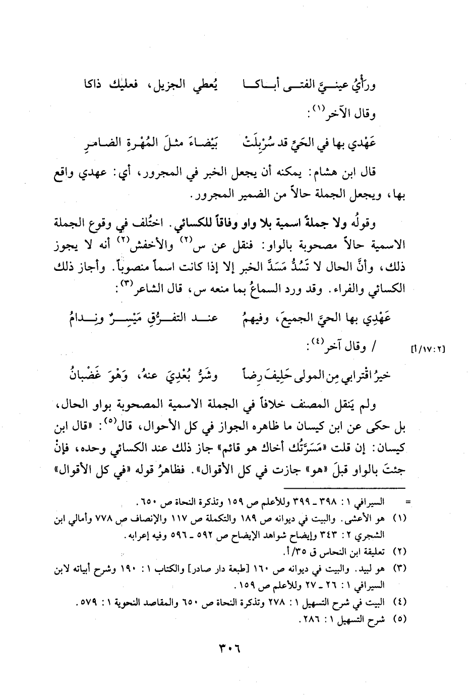 وقوله ولا جملة اسمية بلا واو وفاقاً للكسائي. اختلف في وقوع الجملة الأسمية حالاً مصحوبة بالواو: فنقل عن س والأخفش أنه لا يجوز ذلك، وأن الحال لا تسد مسد الخبر إلا إذا كانت اسماً منصوباً. وأجاز ذلك الكسائي والفراء. وقد ورد السماع بما منعه س، قال الشاعر: