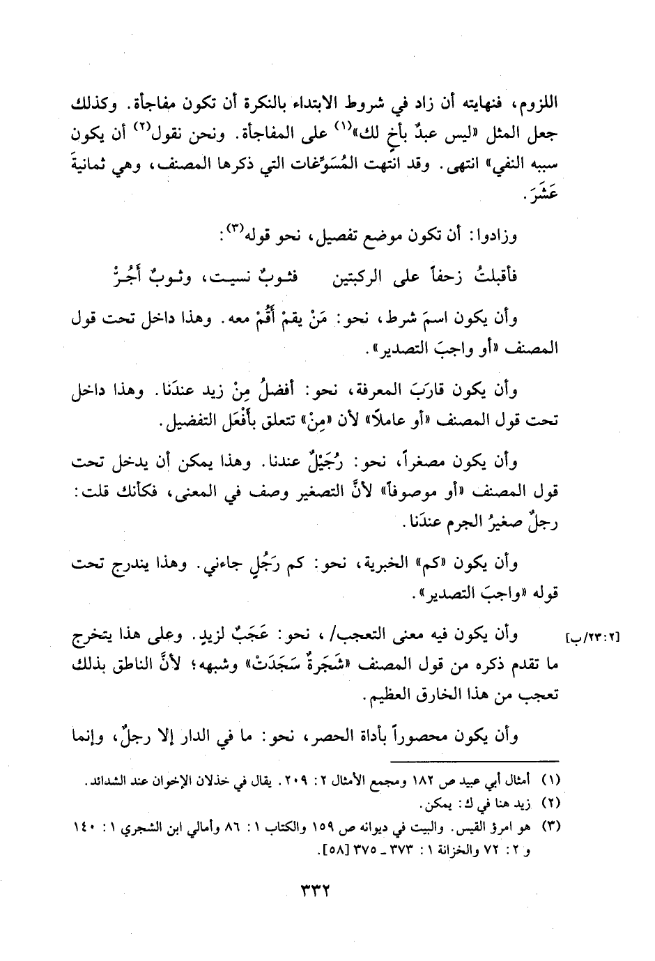 اللزوم, فنهايته أن زاد في شروط الابتداء بالنكرة أن تكون مفاجأة. وكذلك جعل المثل "ليس عبد بأخ لك" علي المفاجأة. ونحن نقول أن يكون سببه النفي" انتهي. وقد انتهت المسوغات التي ذكرها المصنف, وهي ثمانية عشر.