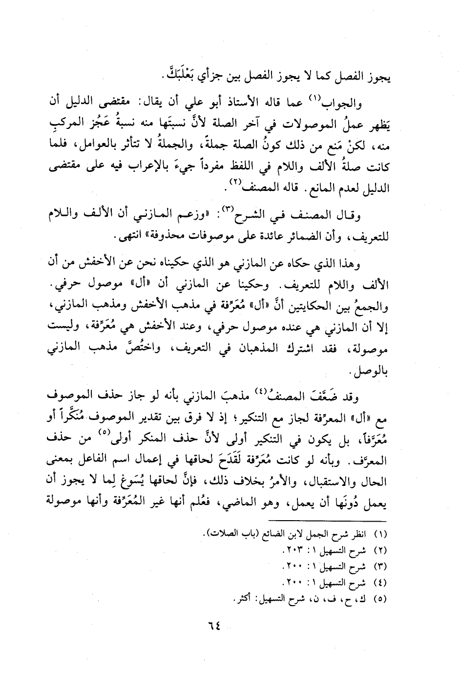 وهذا الذي حكاه عن المازني هو الذي حكيناه نحن عن الأخفش من أن الألف واللام للتعريف. وحكينا عن المازني أن "أل" موصول حرفي. والجمع بين الحكايتين أن "أل" معرفة في مذهب الأخفش ومذهب المازني, إلا أن المازني هي عنده موصول حرفي, وعند الأخفش هي معرفة, وليست موصولة, فقد اشترك المذهبان في التعريف, واختص مذهب المازني بالوصل.