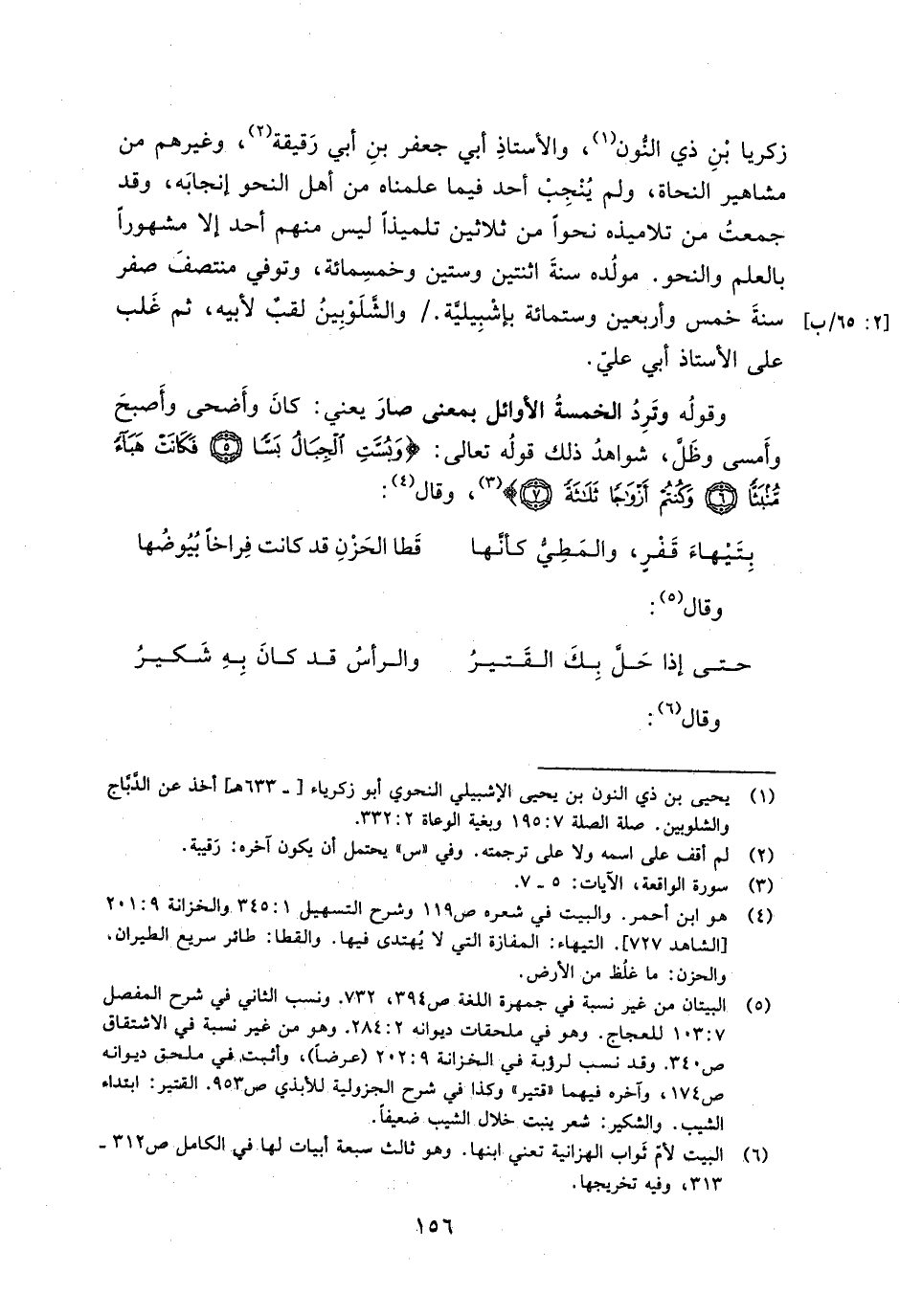 زكريا بن ذي النون، والأستاذ أبي جعفر بن أبي رقيقة، وغيرهم من مشاهير النحاة، ولم ينجب أحد فيما علمناه من أهل النحو إنجابه، وقد جمعت من تلاميذه نحوًا من ثلاثين تلميذًا ليس منهم أحد إلا مشهورًا بالعلم والنحو. مولده سنة اثنتين وستين وخمسمائة، وتوفي منتصف صفر سنة خمس وأربعين وستمائة بإشبيلية. /والشلوبين لقب لأبيه، ثم غلب على الأستاذ أبي علي.