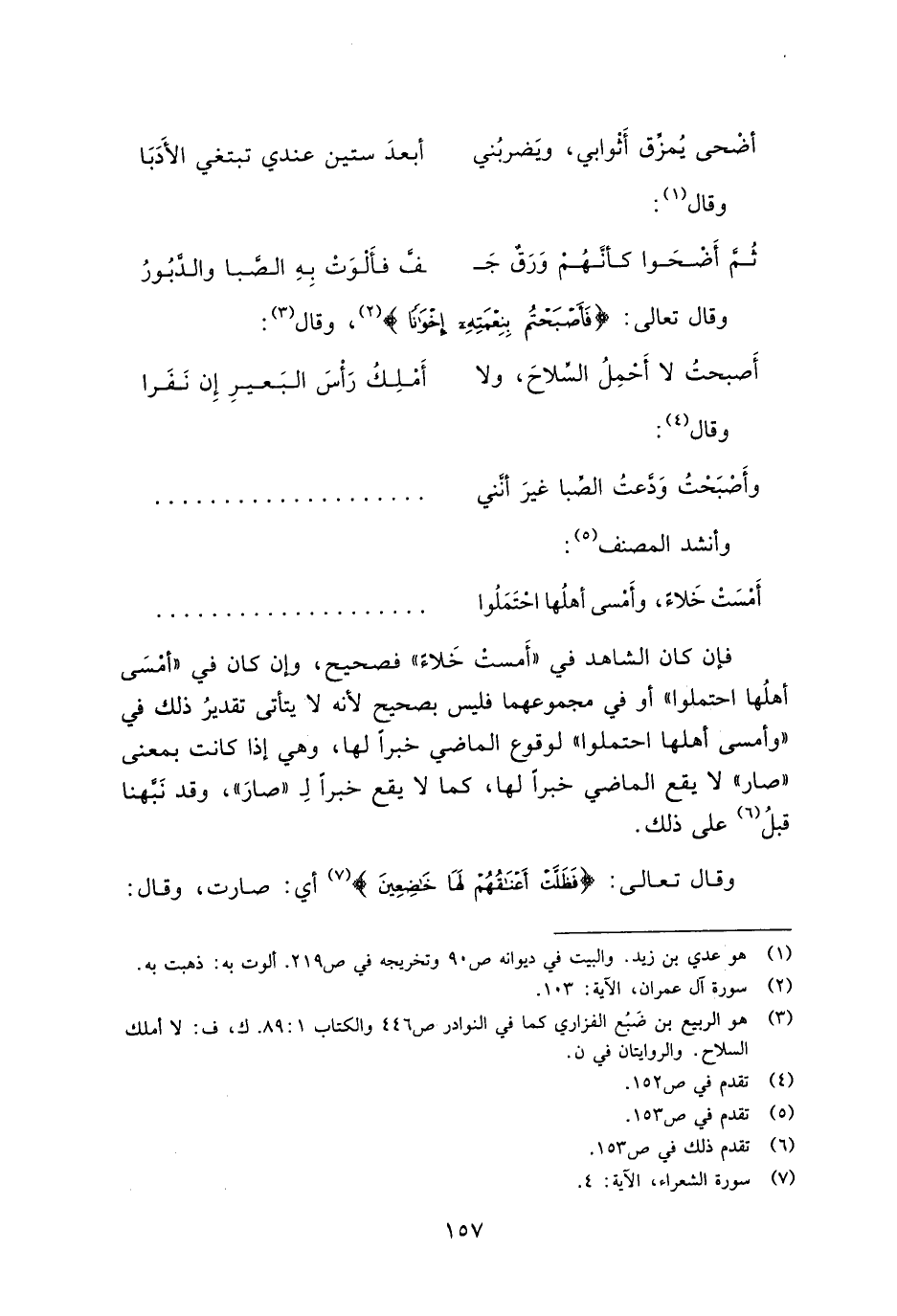 فإن كان الشاهد في "أمست خلاء" فصحيح، وإن كان في "أمسى أهلها احتملوا" أو في مجموعهما فليس بصحيح لأنه لا يتأتى تقدير ذلك في "وأمسى أهلها احتملوا" لوقوع الماضي خبرًا لها، وهي إذا كانت بمعنى "صار" لا يقع الماضي خبرًا لها، كما لا يقع خبرًا لـ"صار"، وقد نبهنا قبل على ذلك.