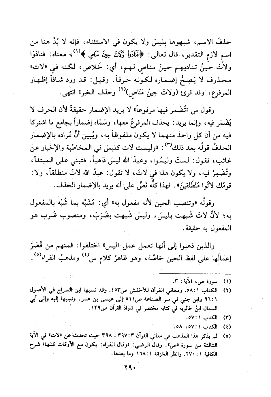 والذين ذهبوا إلى أنها تعمل عمل "ليس" اختلفوا: فمنهم من قصر إعمالها على لفظ الحين خاصة، وهو ظاهر كلام س ومذهب الفراء.