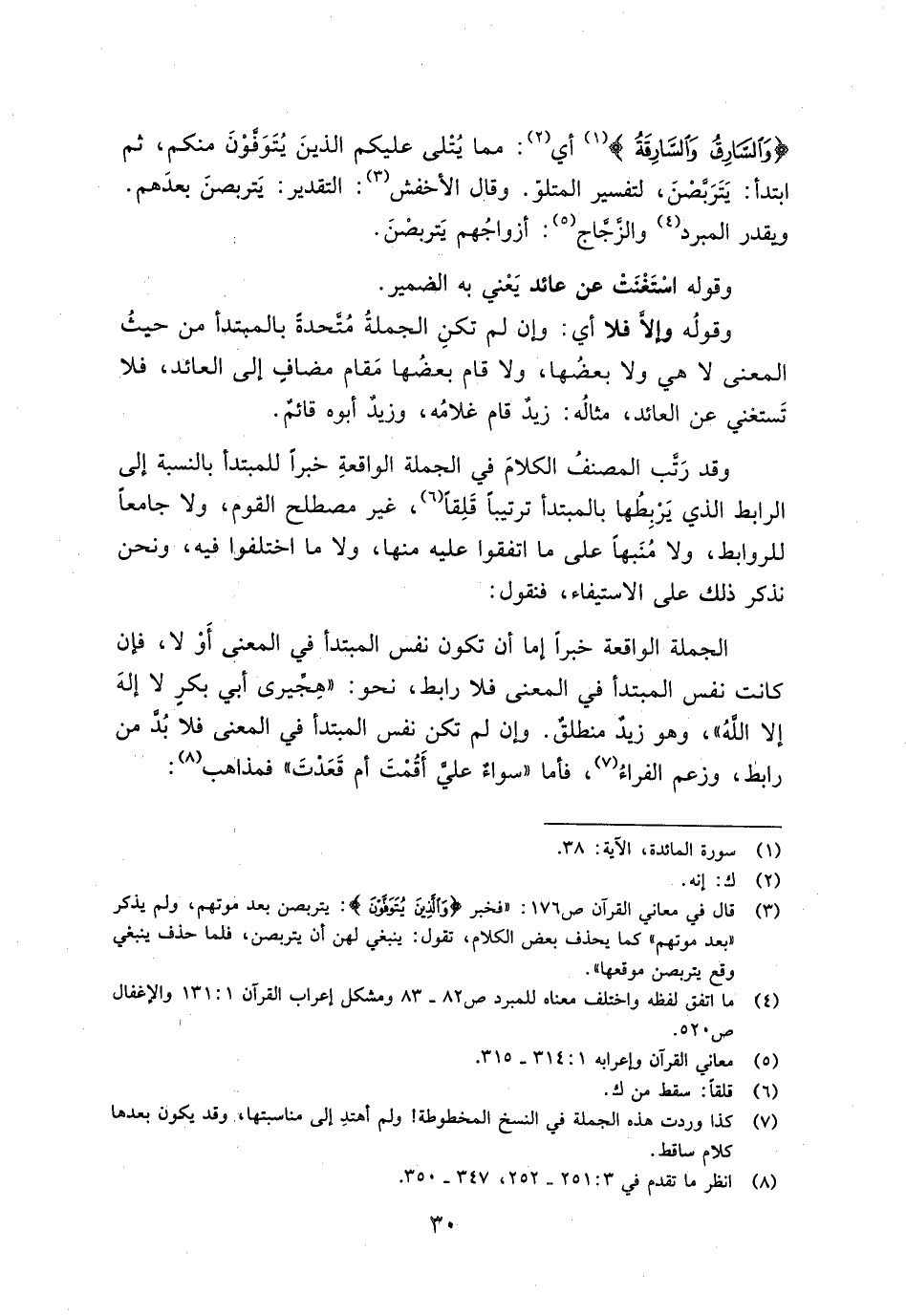 (وَالسَّارِقُ وَالسَّارِقَةُ) أي: مما يتلى عليكم الذين يتوفون منكم، ثم ابتدأ: يتربصن، لتفسير المتلو. وقال الأخفش: التقدير: يتربصن بعدهم. ويقدر المبرد والزجاج: أزواجهم يتربصن.