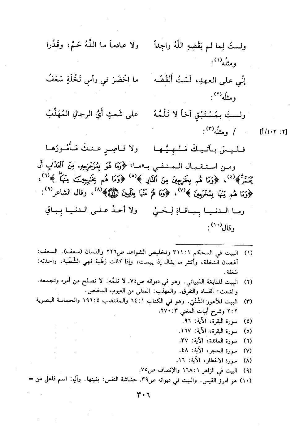 ومن استقبال المنفي بـ"ما" {وَمَا هُوَ بِمُزَحْزِحِهِ مِنَ الْعَذَابِ أَن يُعَمَّرَ} , {وَمَا هُم بِخَارِجِينَ مِنَ النَّارِ} {وَمَا هُم بِخَارِجِينَ مِنْهَا} {وَمَا هُم مِّنْهَا بِمُخْرَجِينَ} , {وَمَا هُمْ عَنْهَا بِغَائِبِينَ} ,وقال الشاعر: