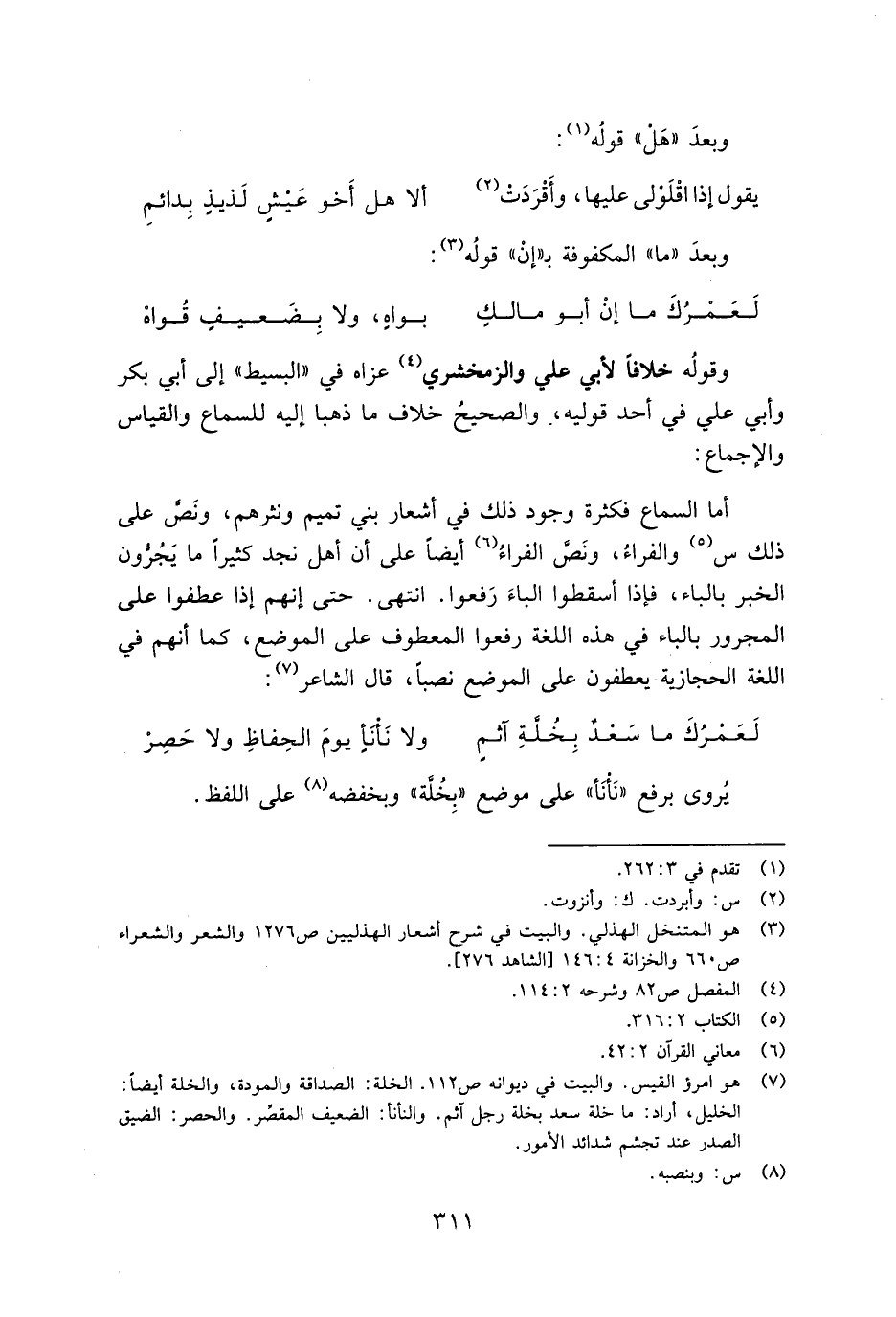وقوله خلافاً لأبي علي والزمخشري عزاه في "البسيط" إلى أبي بكر وأبي علي في أحد قوليه، والصحيح خلاف ما ذهبا إليه للسماع والقياس والإجماع: