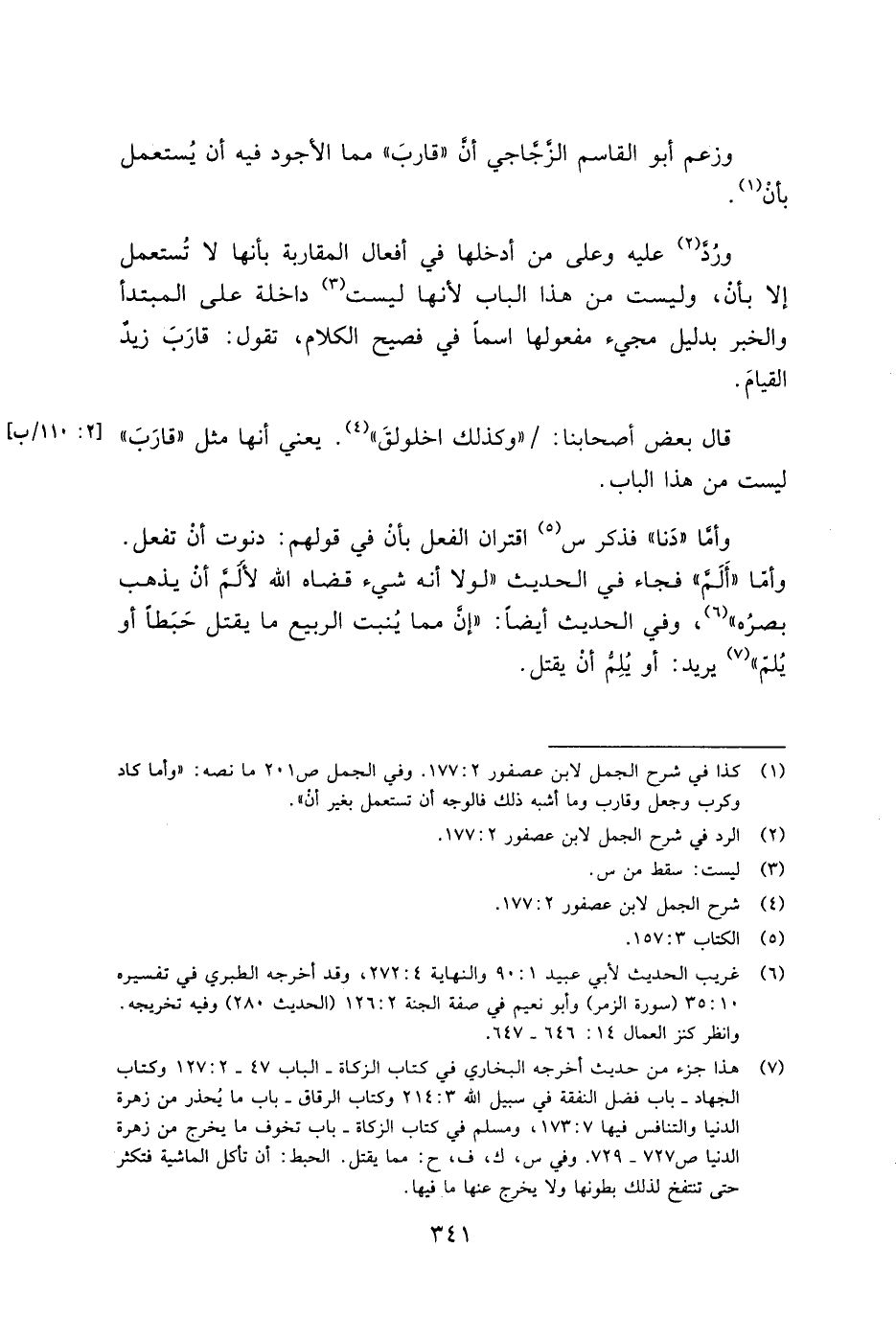 وزعم أبو القاسم الزجاجي أن "قارب" مما الأجود فيه أن يستعمل بأن.
