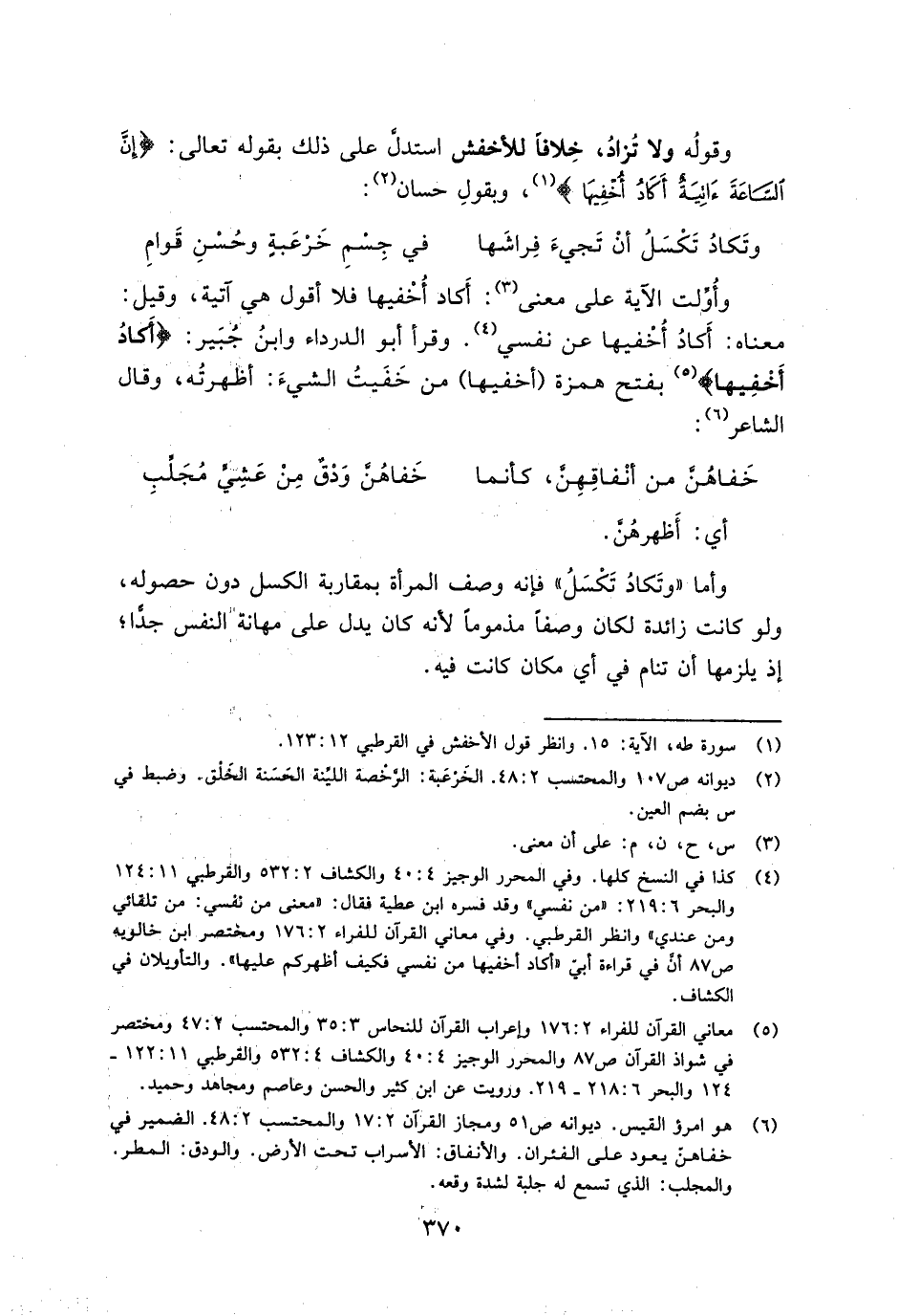وقوله ولا تزاد، خلافًا للأخفش استدل على ذلك بقوله تعالى: {إِنَّ السَّاعَةَ آَتِيَةٌ أَكَادُ أُخْفِيهَا}، وبقول حسان: