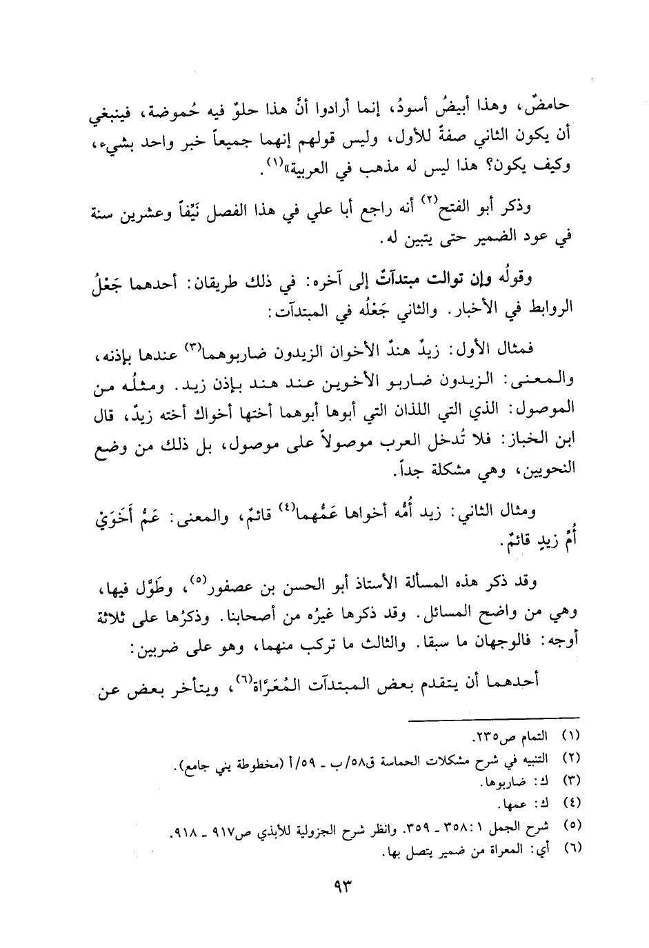 وذكر أبو الفتح أنه راجع أبا علي في هذا الفصل نيفًا وعشرين سنة في عود الضمير حتى يتبين له.
