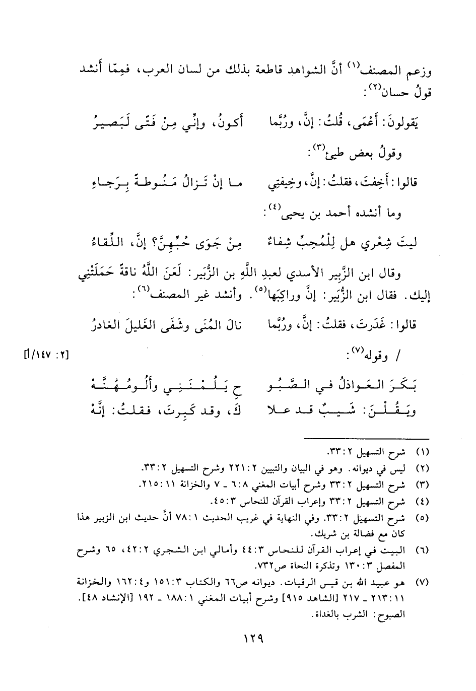 وزعم المصنف أنَّ الشواهد قاطعة بذلك من لسان العرب، فمِمّا أنشد قولُ حسان: