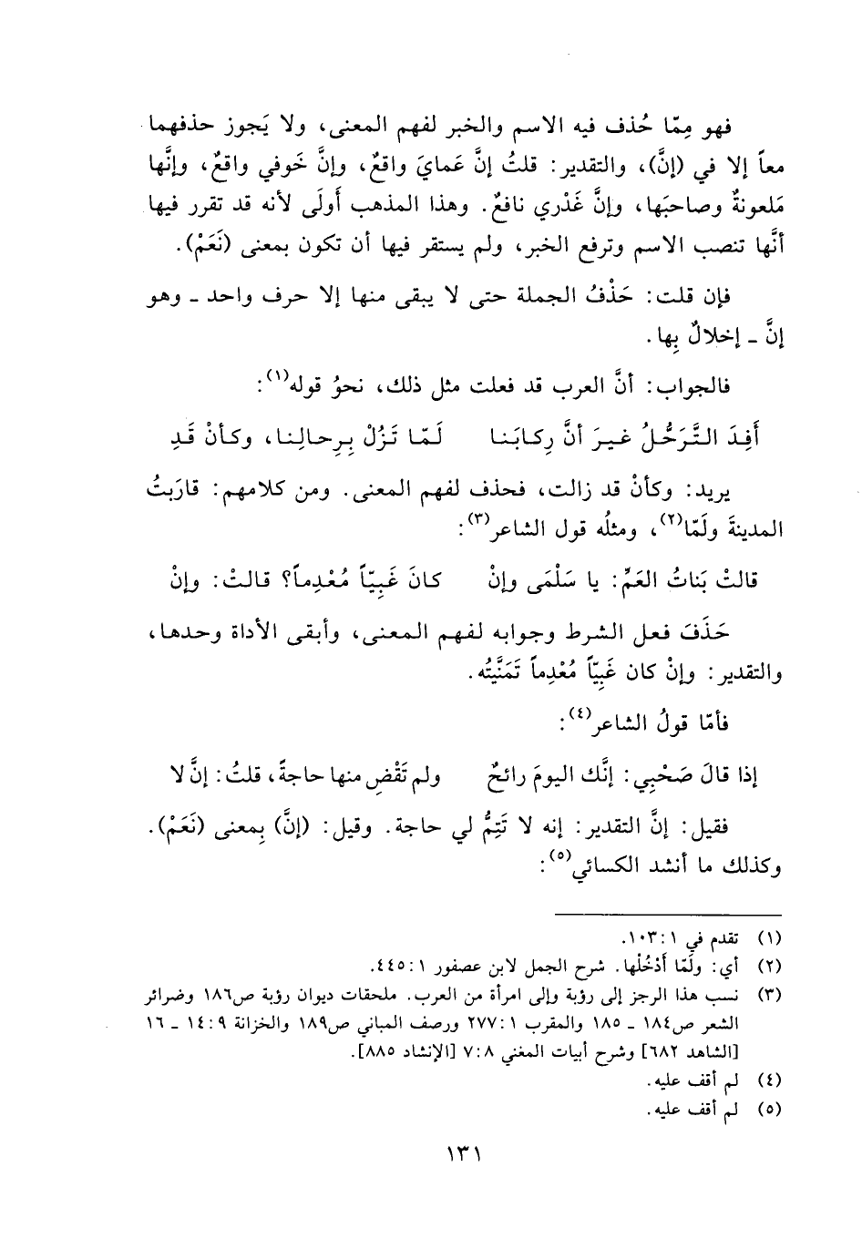 إذا قالَ صَحْبِي: إنَّك اليومَ رائحٌ ... ولم تَقْضِ منها حاجةً قلتُ: إنَّ لا