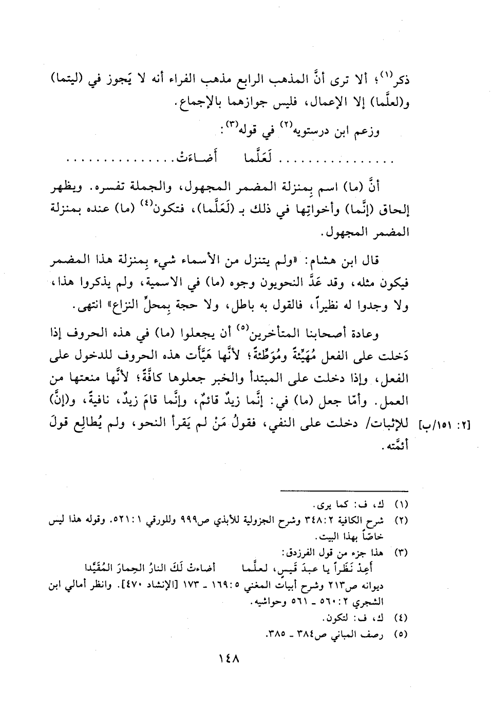 ذكر؛ ألا ترى أن المذهب الرابع مذهب الفراء أنه لا يجوز في (ليتما) و (لعلما) إلا الإعمال, فليس جوازهما بالإجماع.