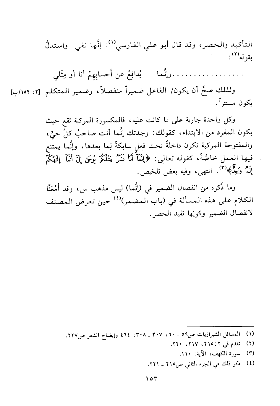 وما ذكره من انفصال الضمير في (إنما) ليس مذهب س, وقد أمعنا الكلام علي هذه المسألة في (باب المضمر) حين تعرض المصنف لانفصال الضمير وكونها تفيد الحصر.